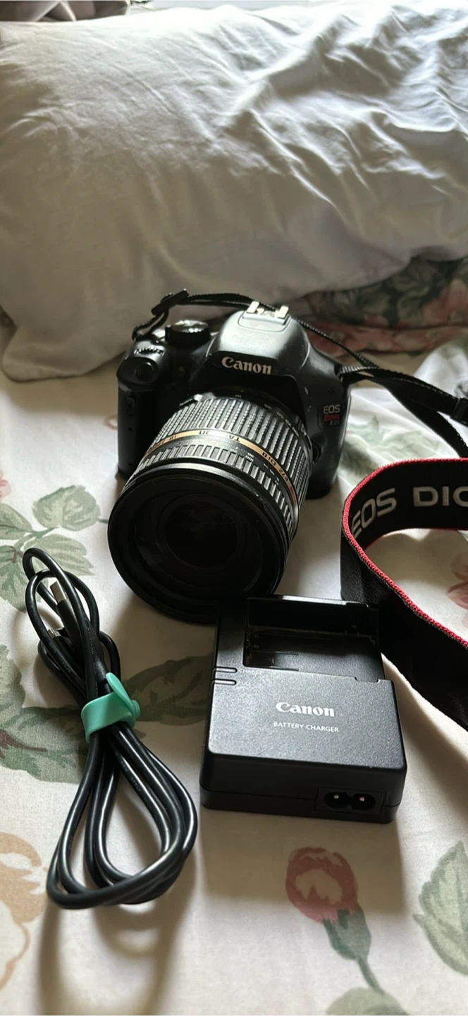 This Canon EOS Rebel T5i is a great entry-level DSLR. It comes with a standard zoom lens, a telephoto lens, and a battery charger. It's perfect for capturing everyday moments or starting your photography journey!