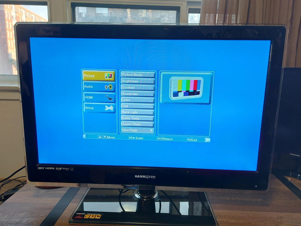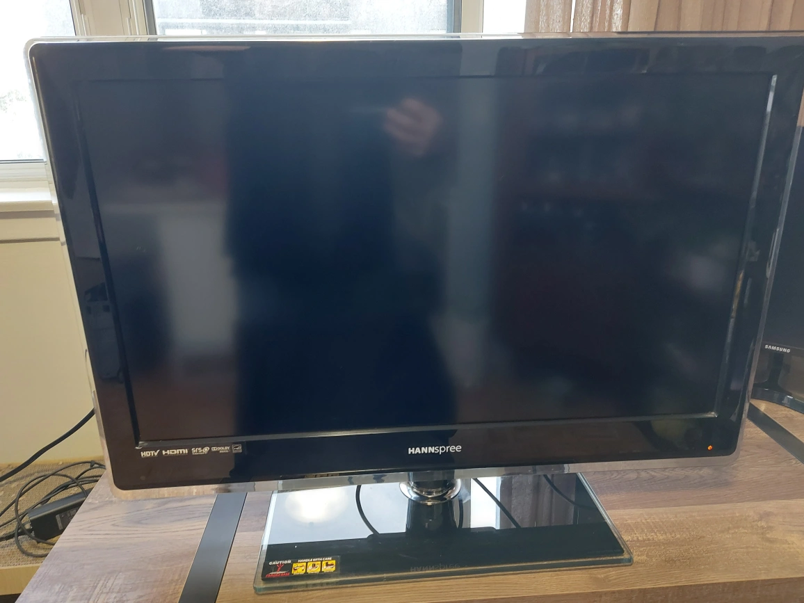 Used LED LCD TV, 32". Includes RCA connectors for vintage consoles and old hardware, and HDMI for new hardware. No remote. Minor scratch on screen surface which is not visible when TV is on, see attached photos.