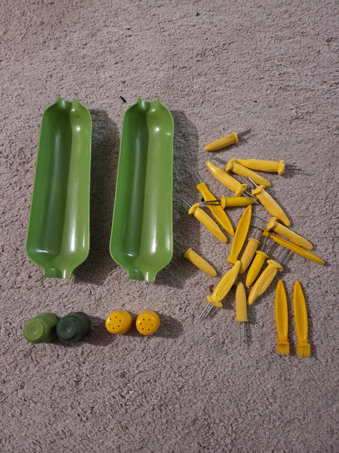 - 17 yellow plastic corn-shaped holders/skewers (metal prongs)