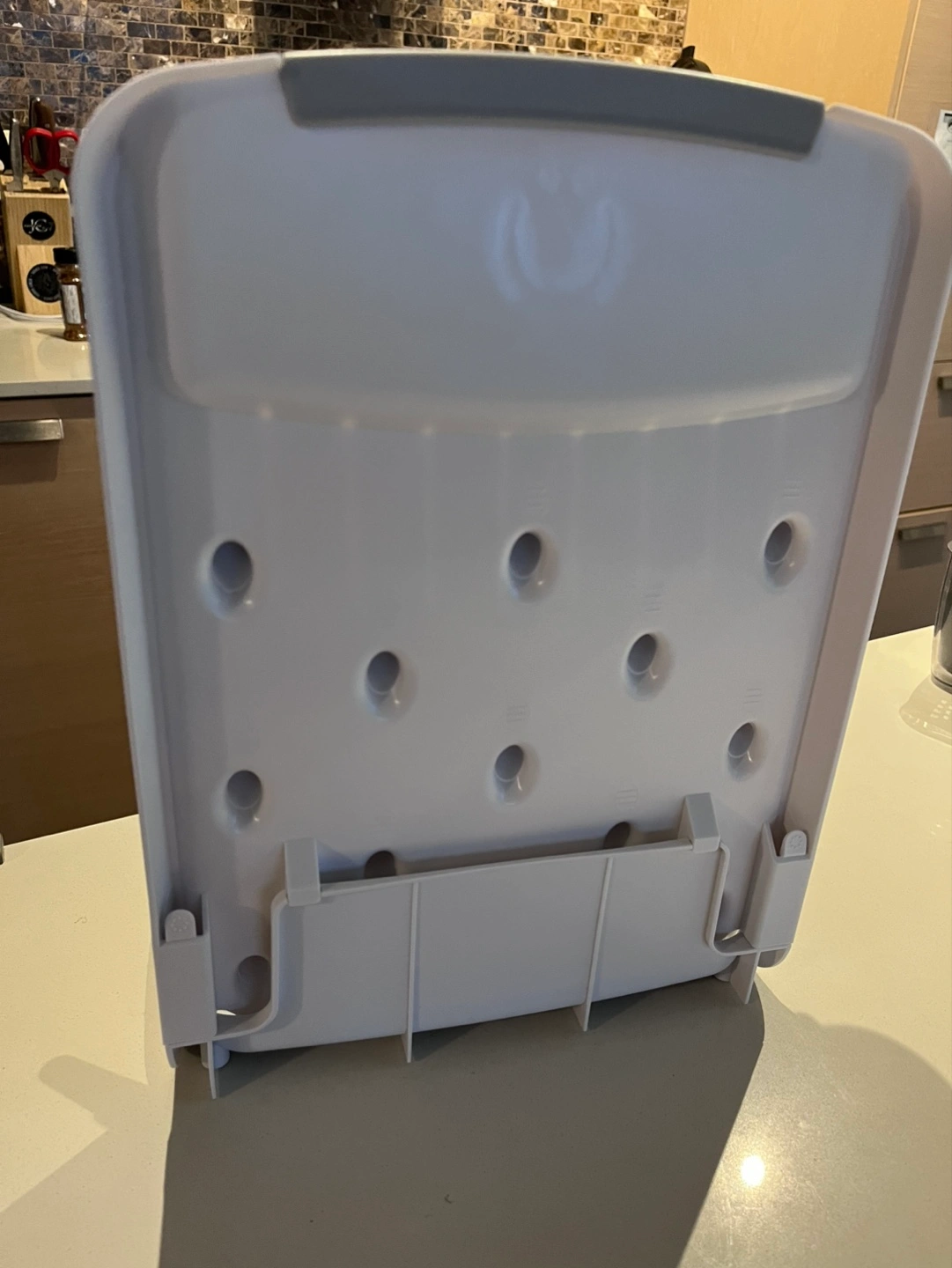 Bottle drying rack. Holds multiple bottles and nipples. Grey plastic. Features a drip tray. Good condition.