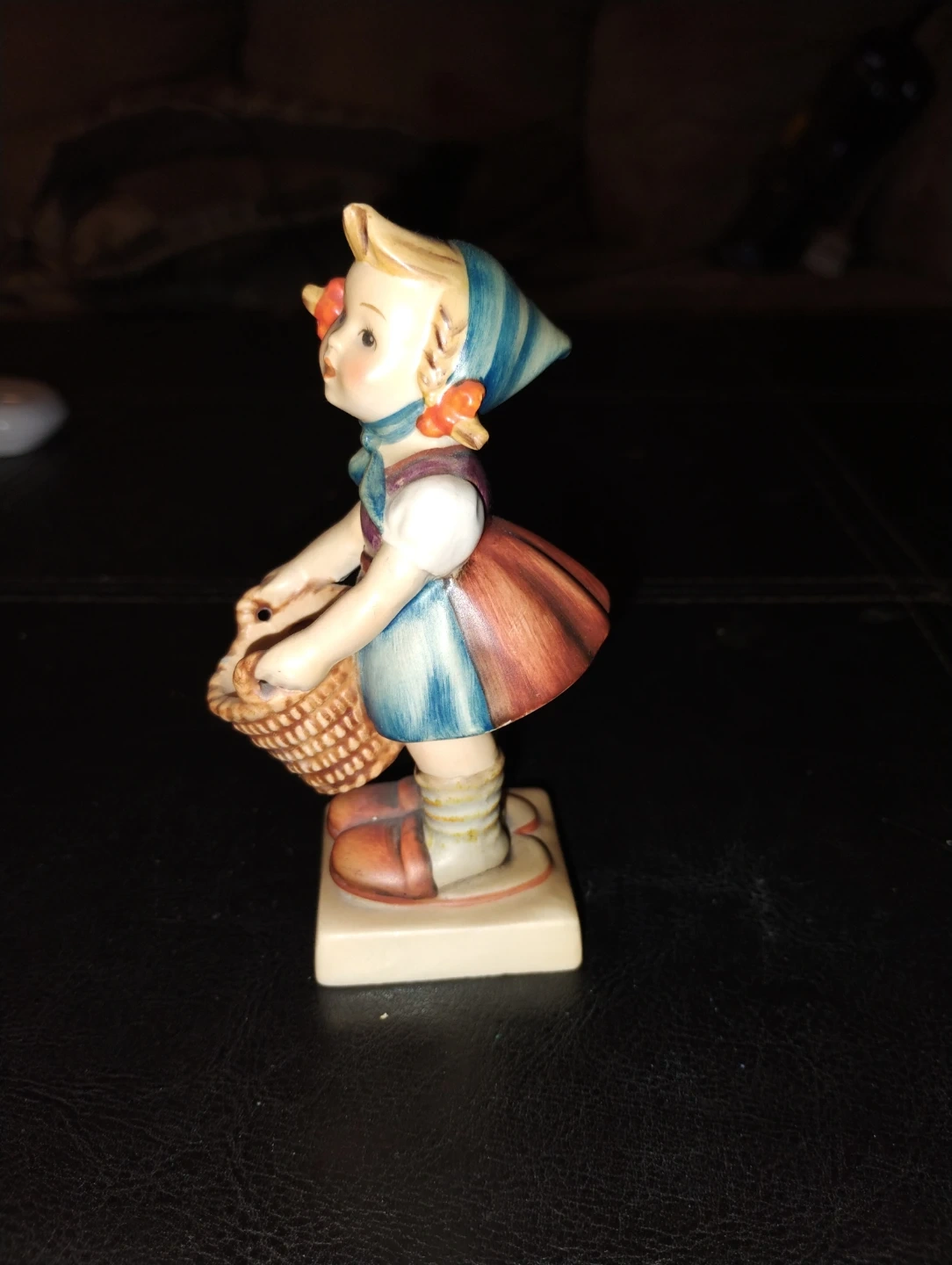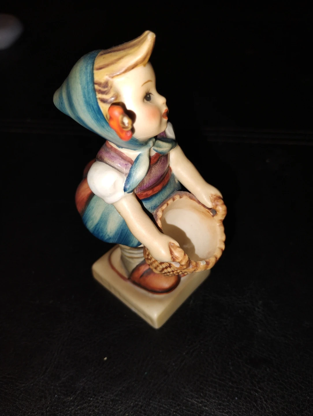 Selling a charming Hummel figurine of a girl holding a basket. This vintage piece is in good condition and would make a lovely addition to any collection. The colours are vibrant and the details are delightful!