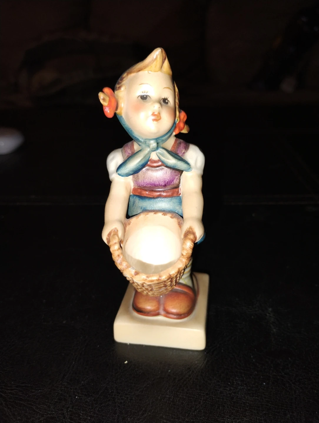Selling a charming Hummel figurine of a girl holding a basket. This vintage piece is in good condition and would make a lovely addition to any collection. The colours are vibrant and the details are delightful!