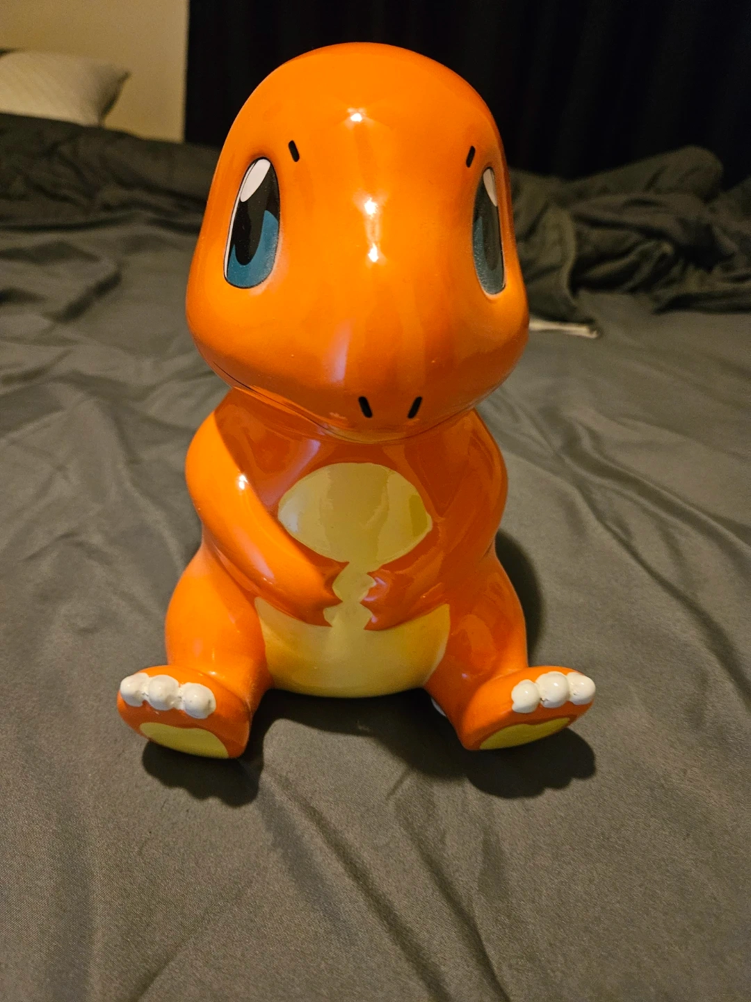 This is a Pokemon Charmander coin bank. It's made of ceramic and features the popular character. It's a fun way for kids to save their change!