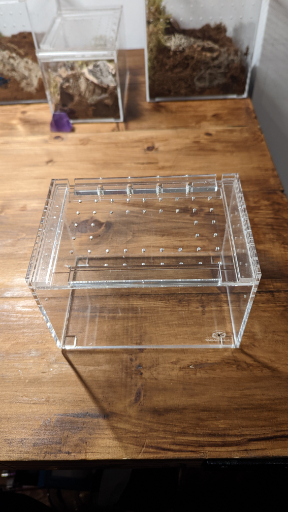 4x4x6 inch Tarantula cribs with sliding top and magnetic lock. These provide great ventilation, easy feeding and secure tops to avoid escapees!