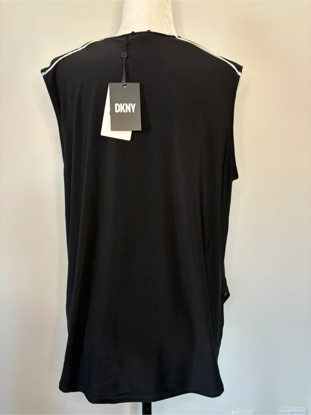 (M) - NEW with TAG! DKNY Black Sleeveless Top with White Trim🏆