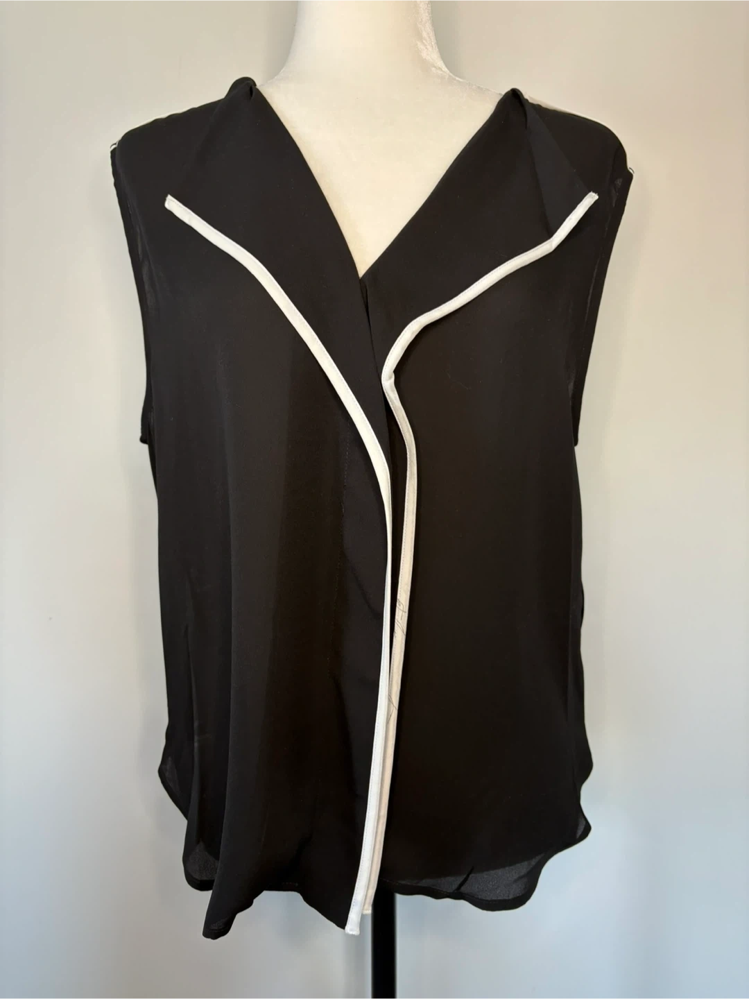 BRAnD NEW with tag! This is a black sleeveless top by DKNY. It features a contrasting white trim along the neckline and down the front. Size medium.