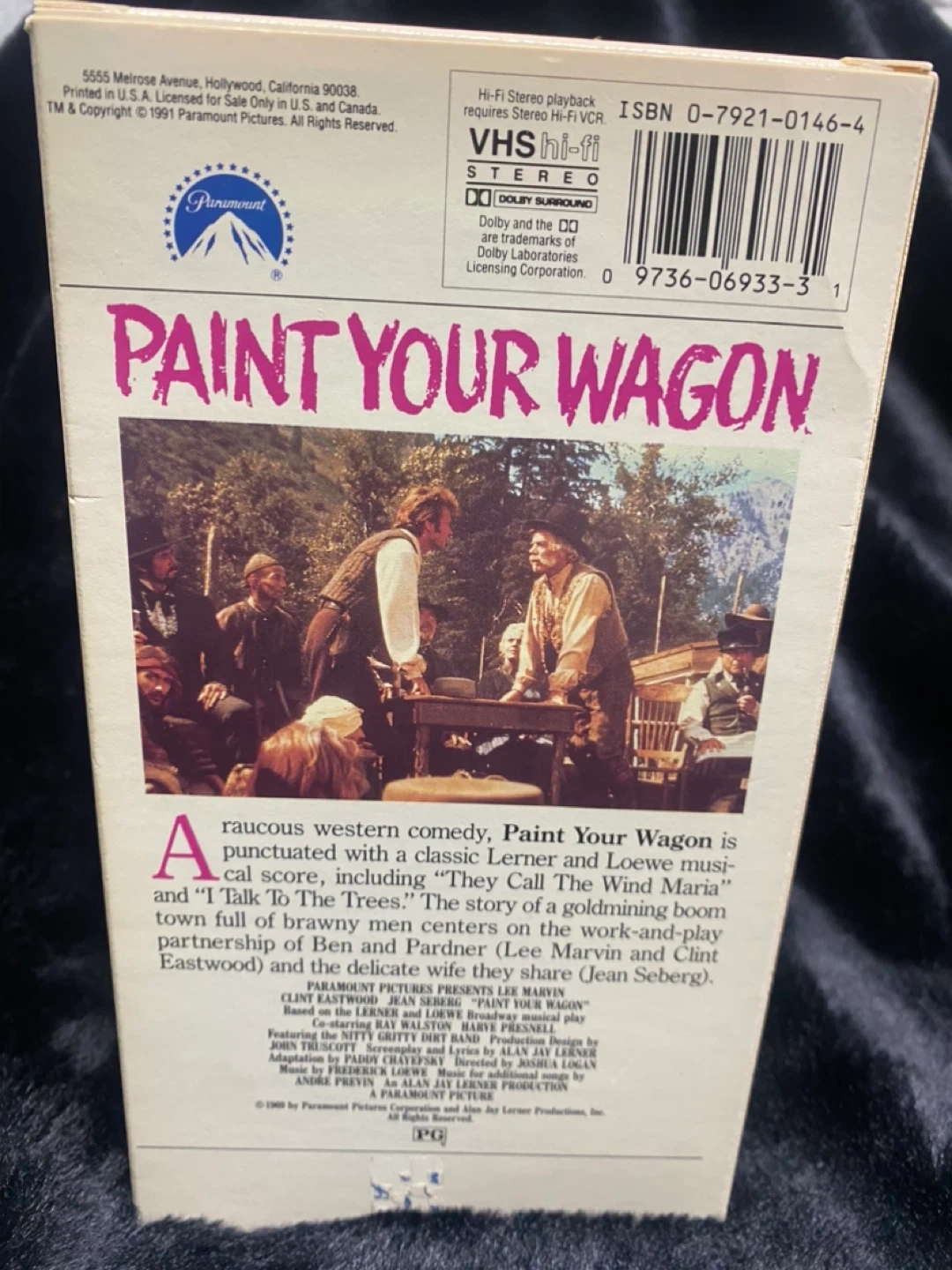 Paint Your Wagon VHS movie. This is a musical western comedy film. It features the songs "They Call the Wind Maria" and "Talk to the Trees".
