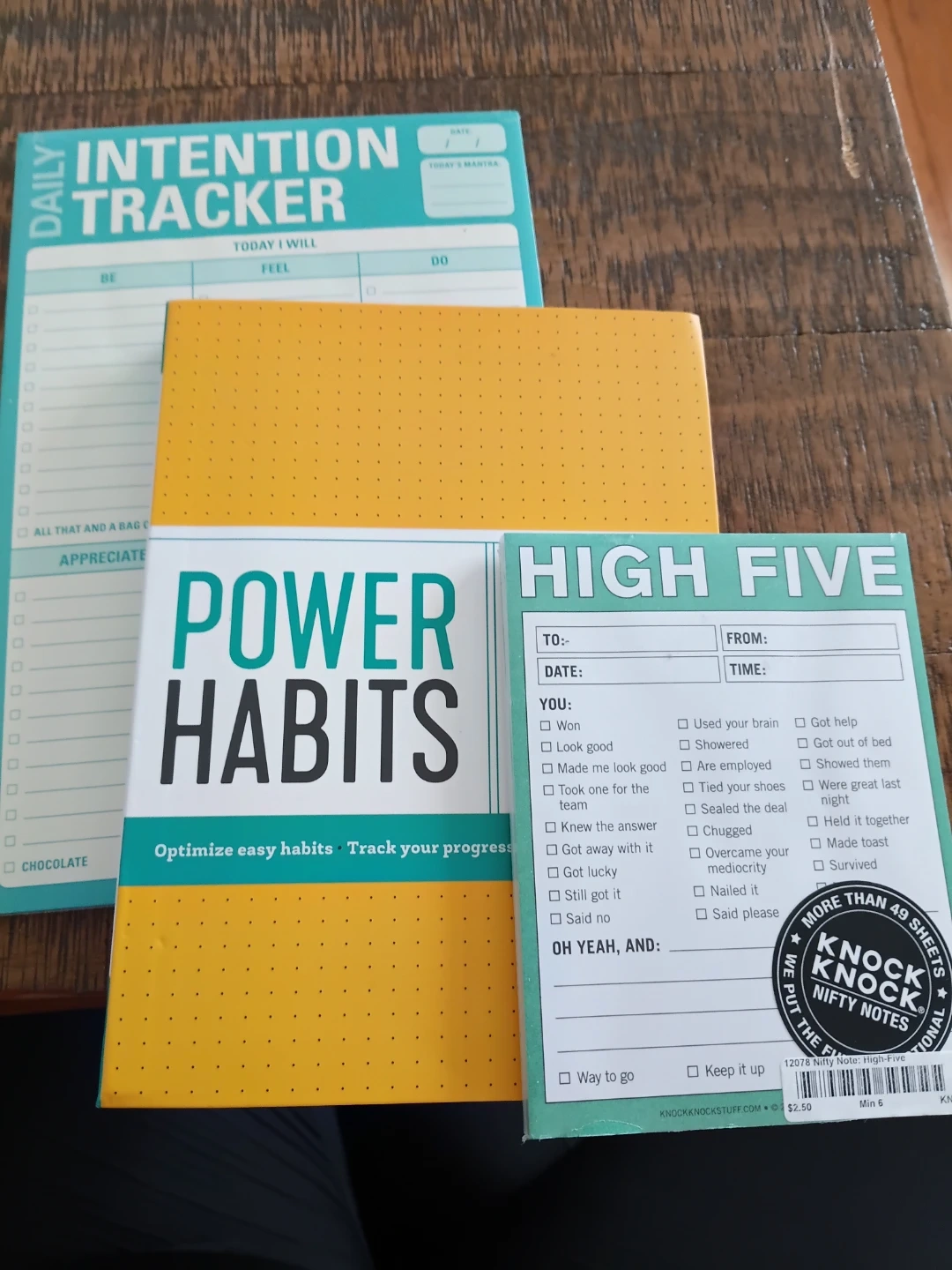 Selling a brand new Knock Knock Intention tracker, Power Habits motivational journal along with Nifty Notes High Five notepad!
