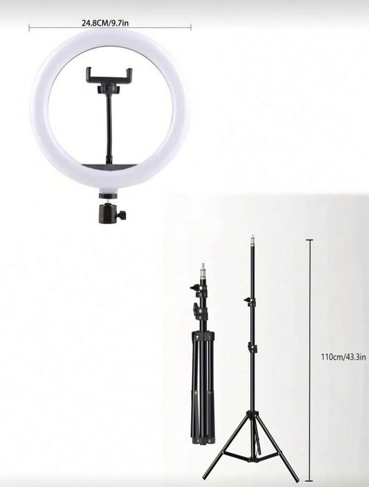 110cm Adjustable Dimmable LED Ring Light With Phone Holder, USB Powered, Tripod Stand, For Selfie, Video, Makeup, Photography