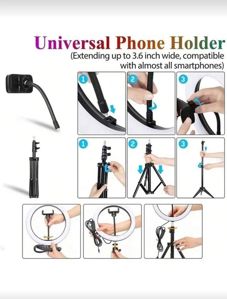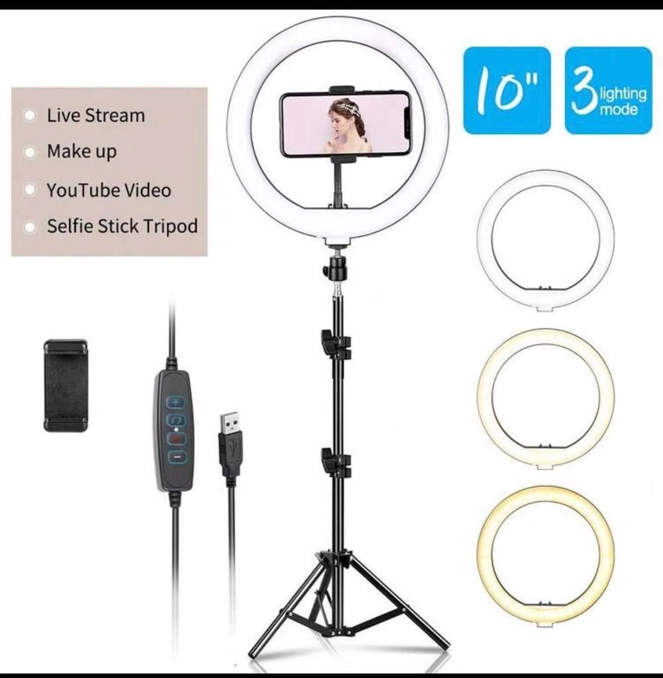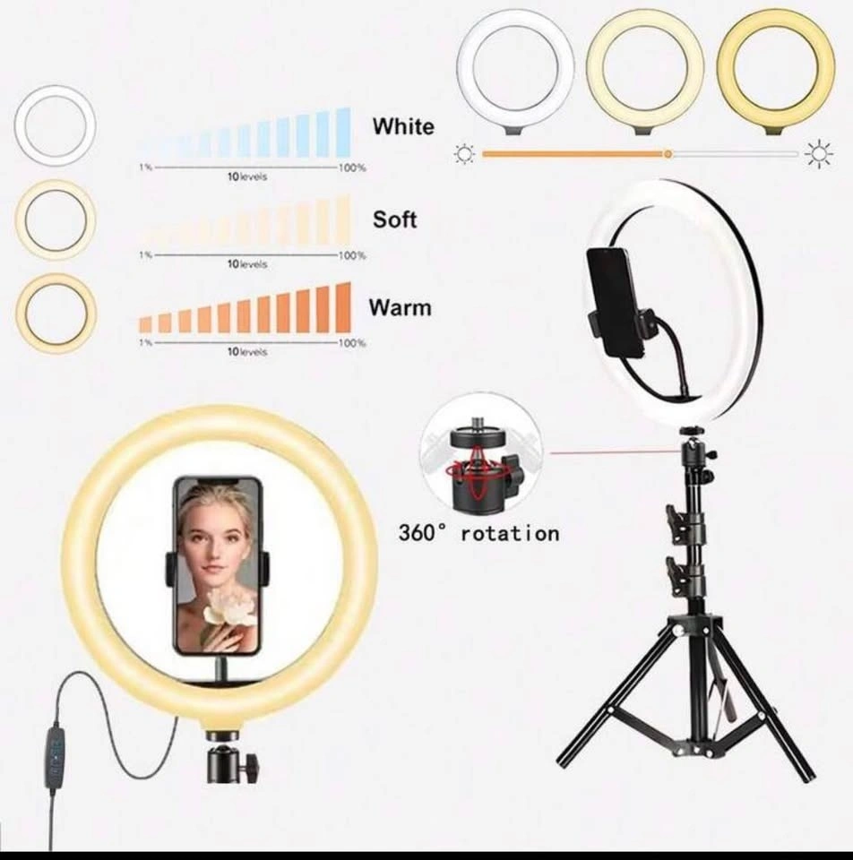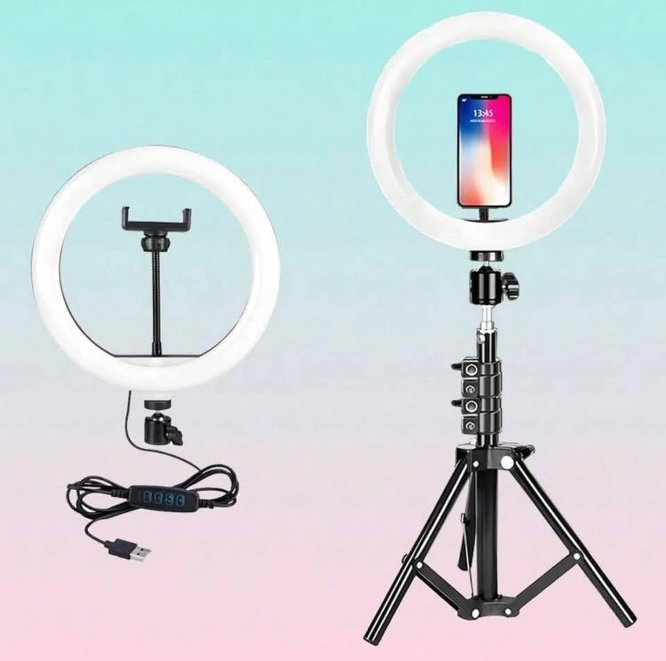 110cm Adjustable Dimmable LED Ring Light With Phone Holder, USB Powered, Tripod Stand, For Selfie, Video, Makeup, Photography