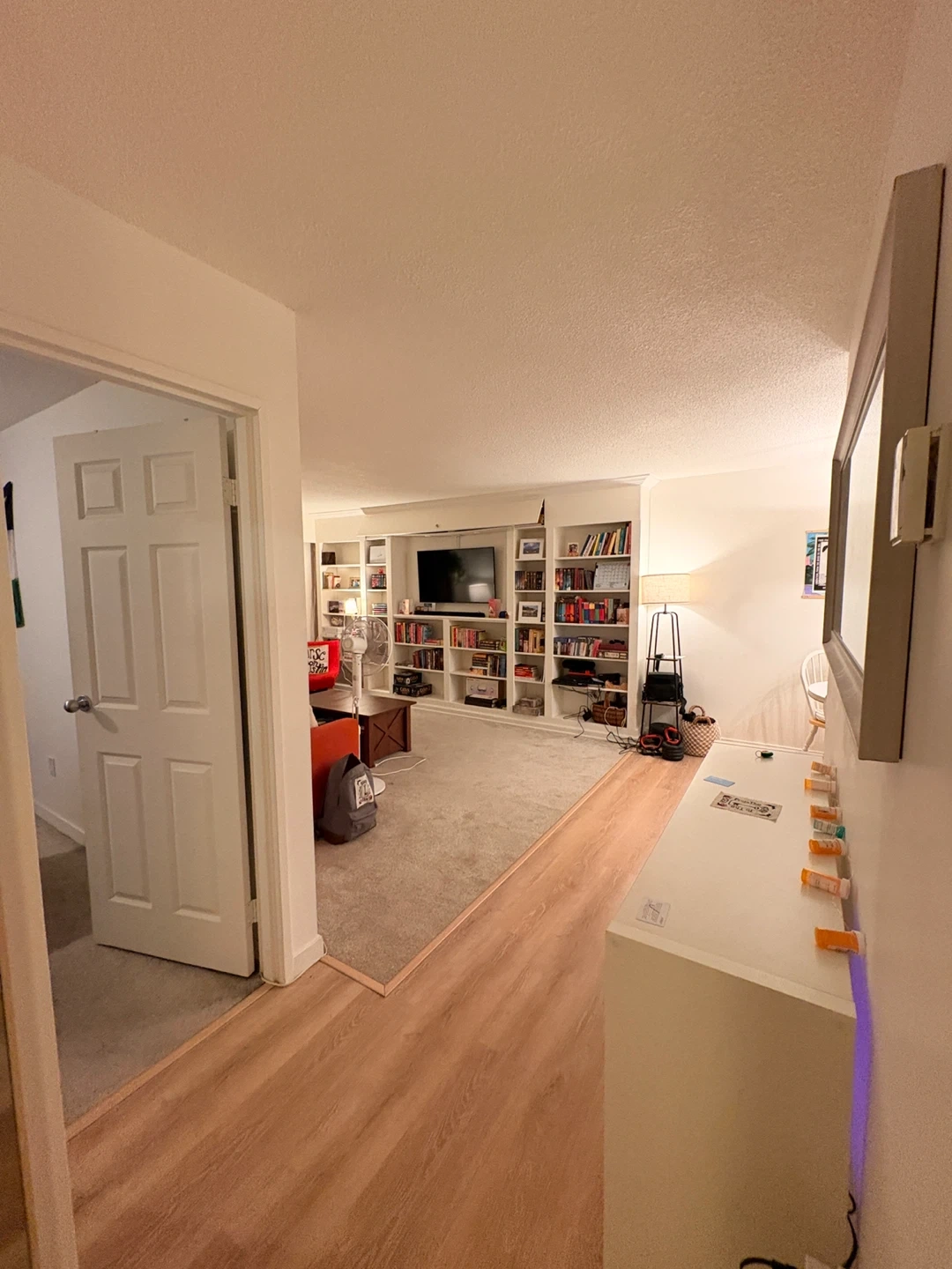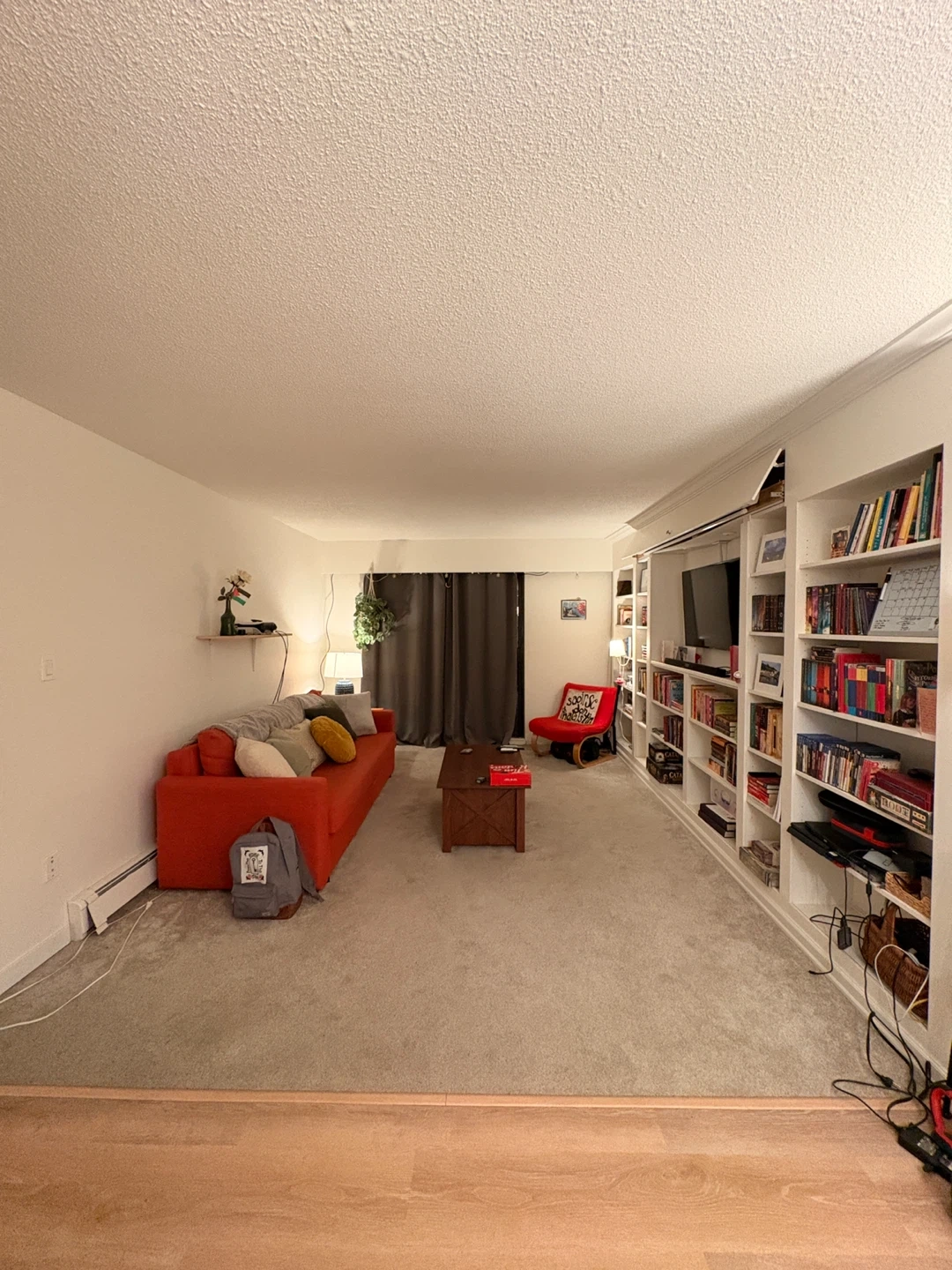 Layout: large living room, comfortable bedroom, large entry closet with organizer