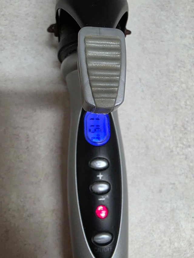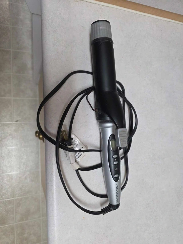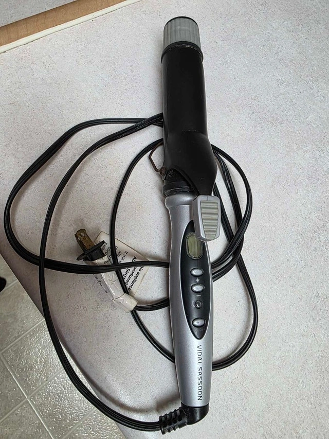Get precise styling with this digital curling iron. The large barrel is perfect for loose curls and soft volume. Digital LCD Display shows the temperature clearly. Use the +/- buttons to find the exact heat setting for your hair type. Gently used; digital display and heat are fully functional. Cash accepted.
