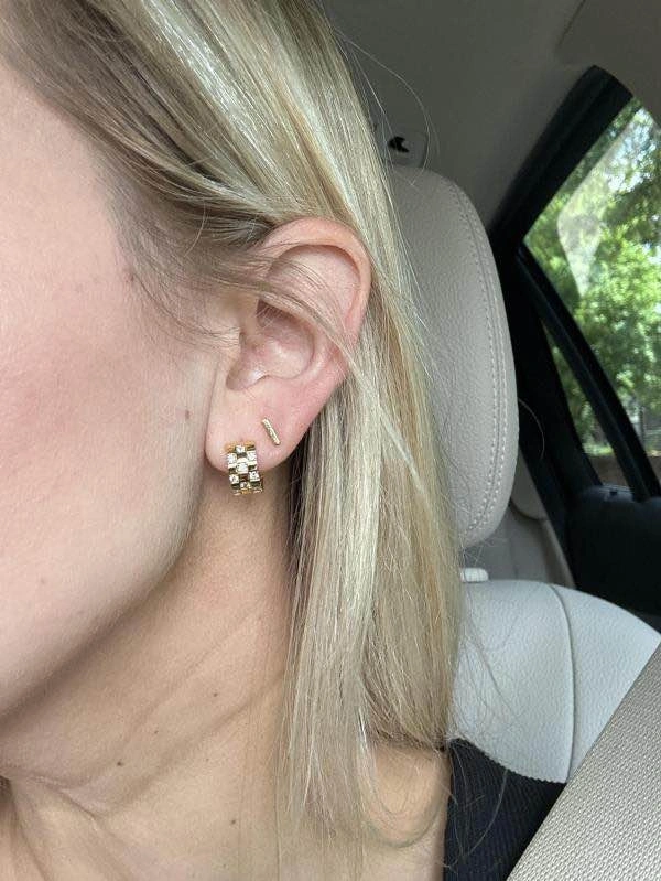 Brand new Ana Luisa Eden small hoop earrings. Contemporary hoops dipped in 14K gold, accented with shimmering cubic zirconia gemstones. Glossy and delicate. Materials: 14K Gold on Brass, Cubic Zirconia. Length: 0.52", Width: 0.52", Depth: 0.11". Weight: 2.80g. Clasp: Hinge. Hoop Diameter: 0.52". Post: Titanium.