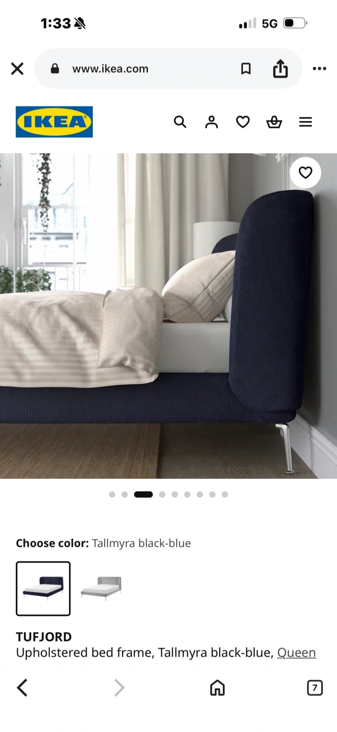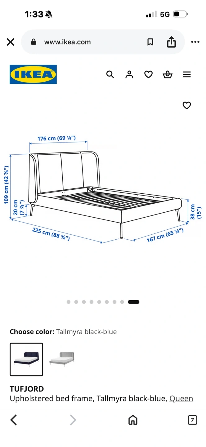 IKEA TUF FJORD Upholstered Bed Frame - Queen, Black-Blue