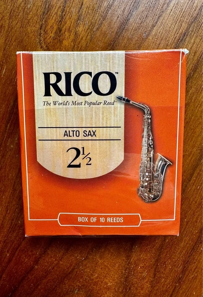 Box of 10 Alto Saxophone reeds. Size 2.5. 6 remaining unused and untouched brand new. See my other posts for other music accessories. Danforth & Coxwell.