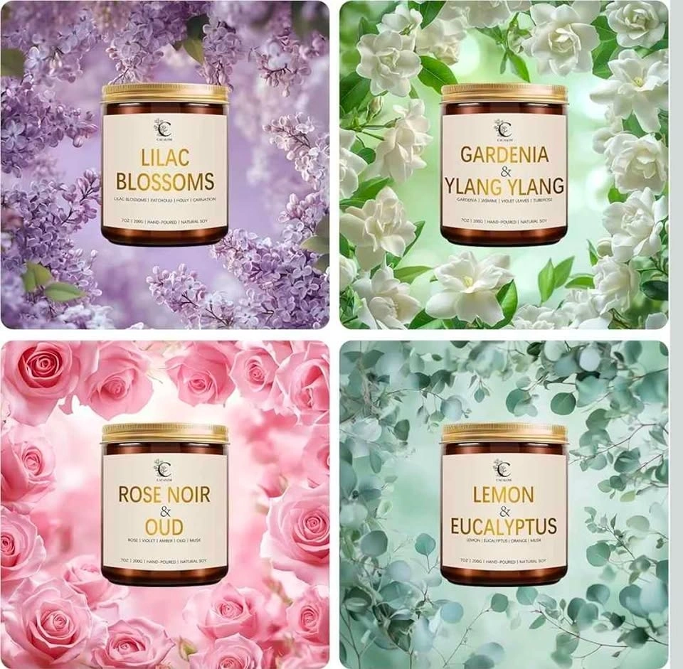 Brand New 4-pack scented candle gift set made with 100% soy wax and cotton wicks. Perfect for home décor, relaxation, aromatherapy, or gifting.