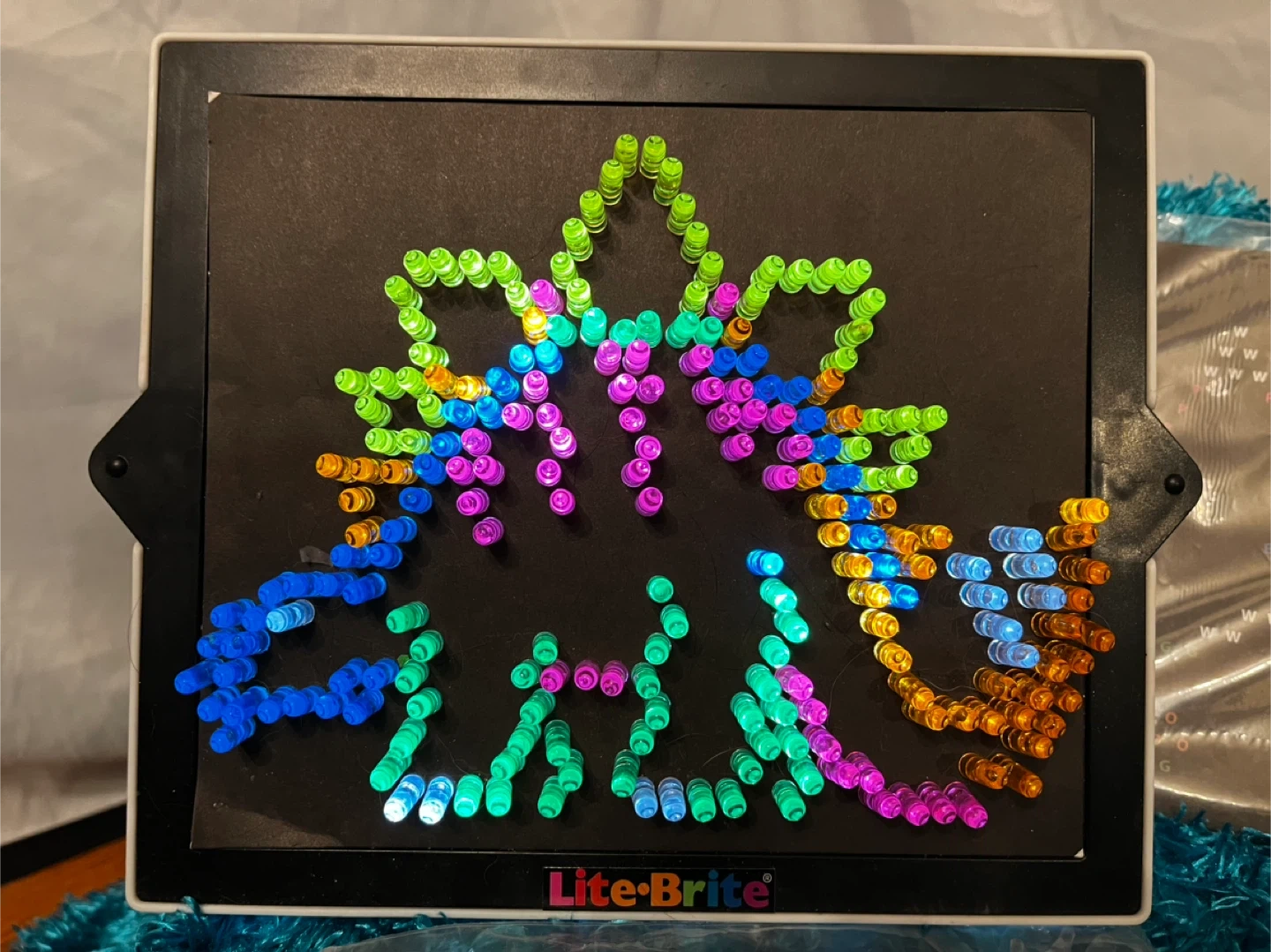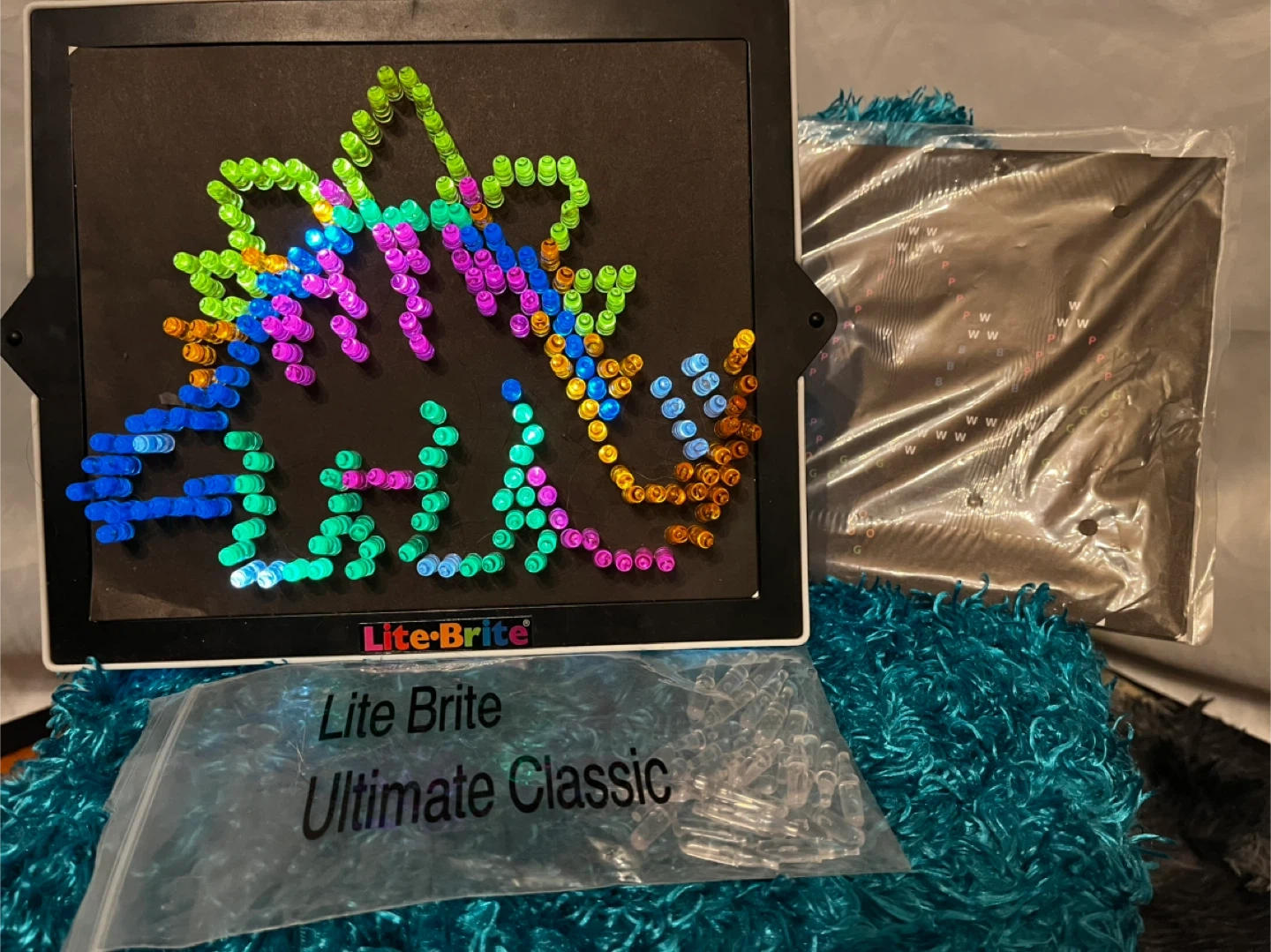 Classic Lite-Brite Ultimate Classic. Includes multiple design templates and light-up pegs. Get creative with this fun retro drawing toy!