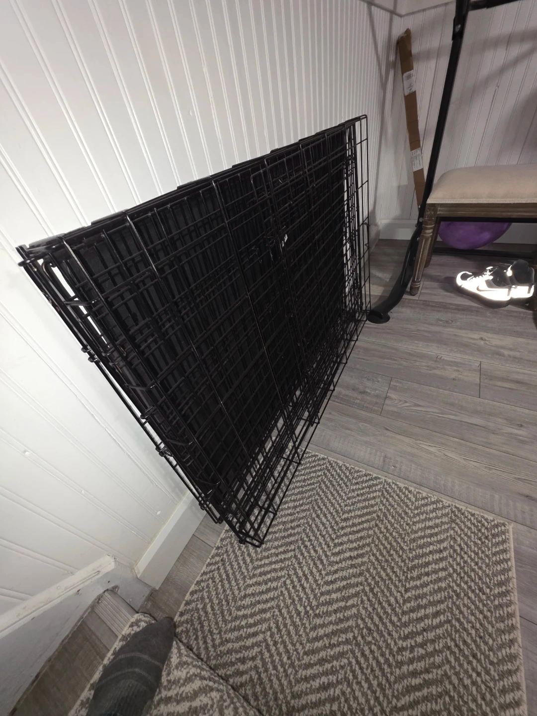 This is a 48-inch folding dog crate from MidWest Homes for Pets. It's designed for extra-large breeds and features a single door with a secure latch. It's portable and easy to assemble.