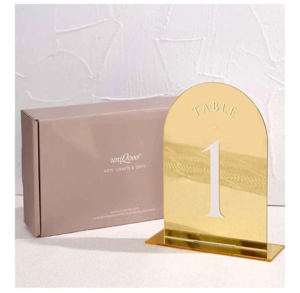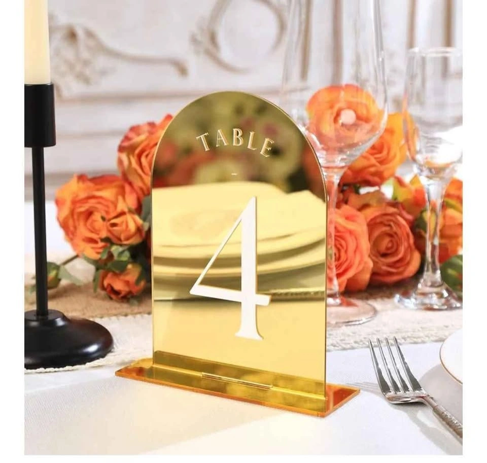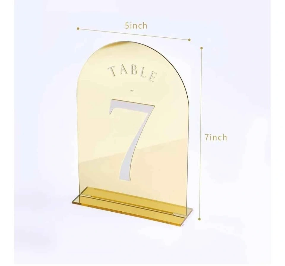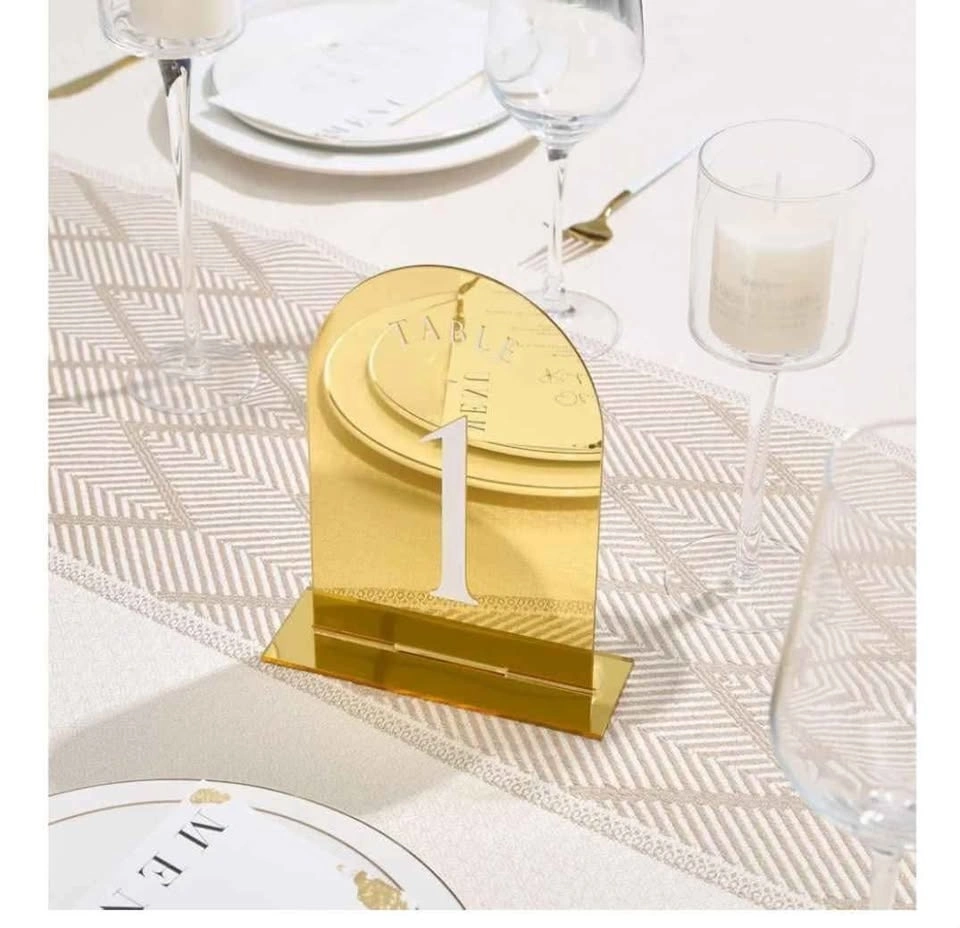 Gold Mirror Arch Wedding Table Numbers with Stands 1-11