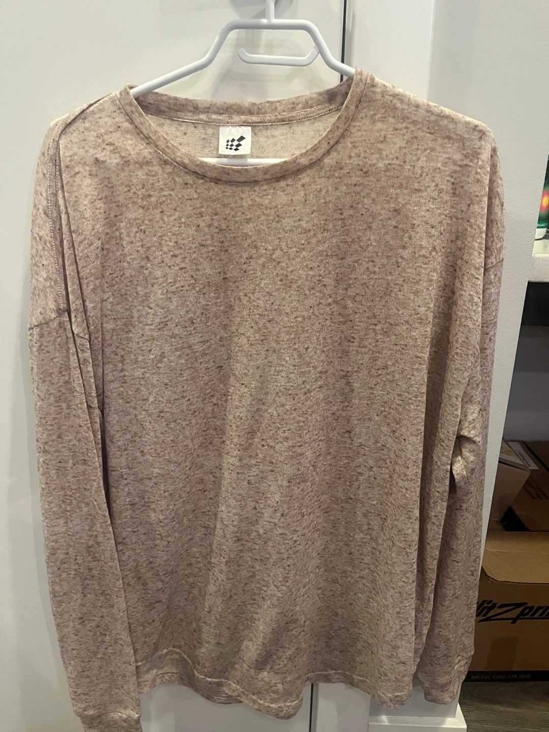 This is a long sleeve top from Everyday Rituals. It's a neutral colour, perfect for layering or wearing on its own. It's in great condition and ready for a new home