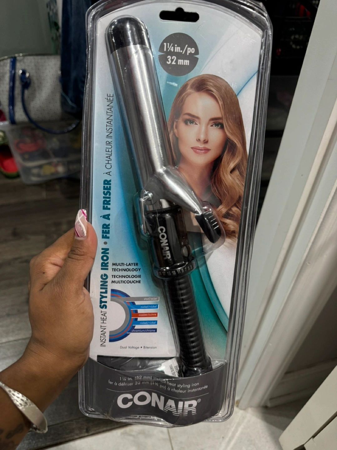 New Conair curling iron. 1 1/4 inch barrel. Instant heat styling iron. Dual voltage. Multi-layer technology.