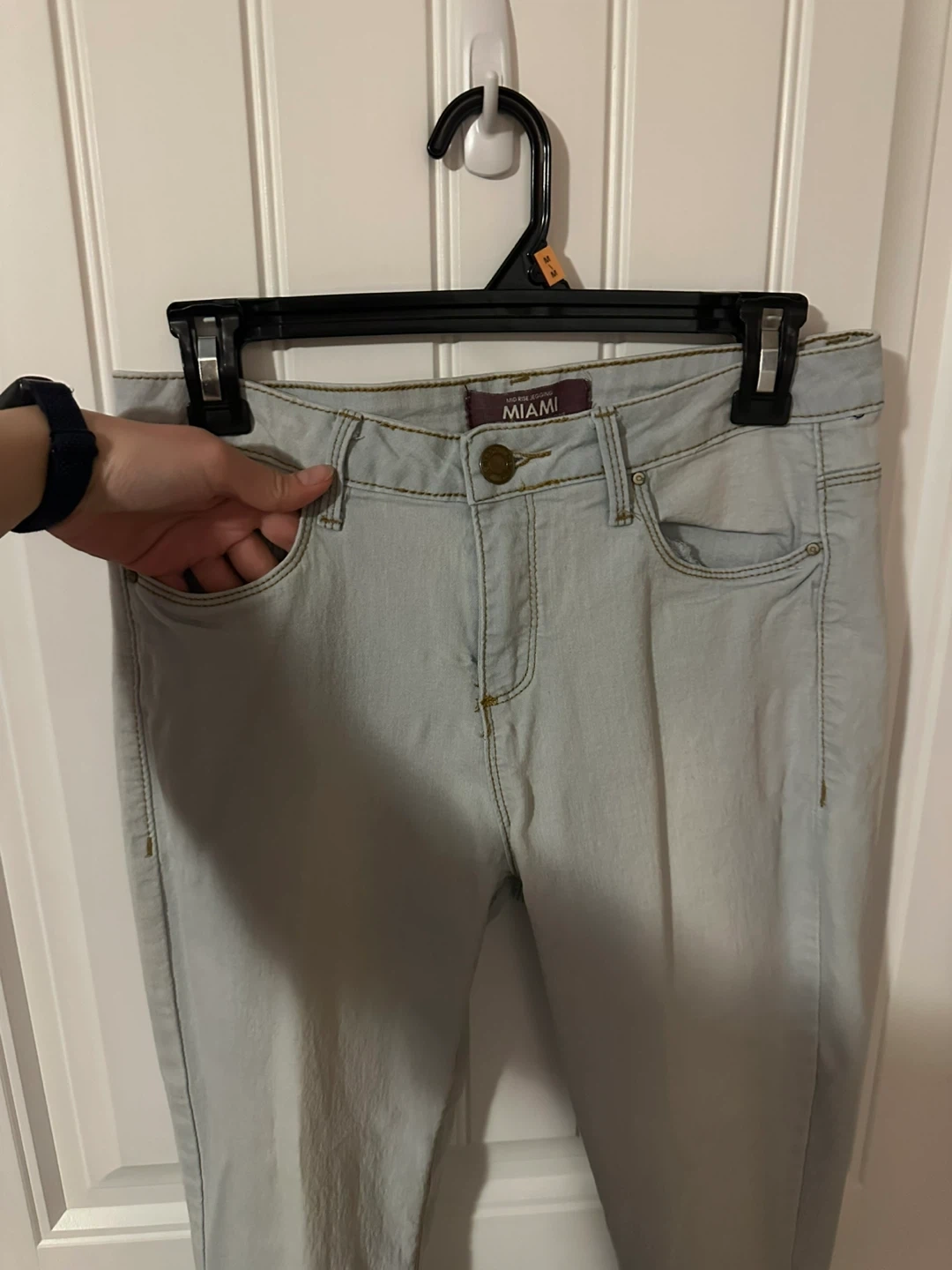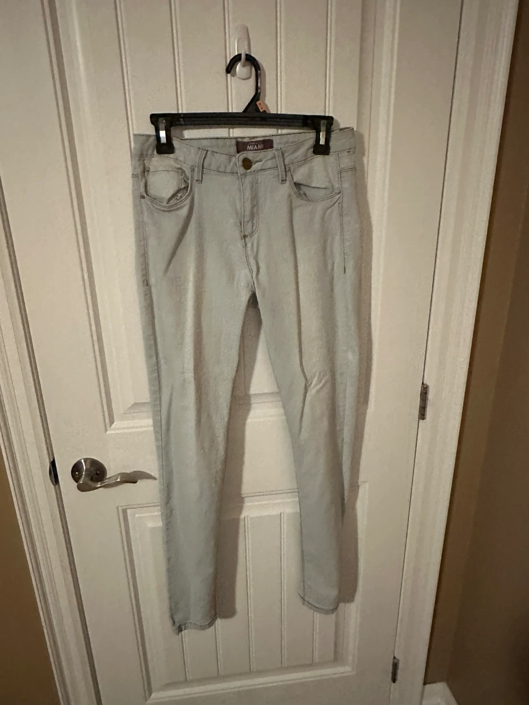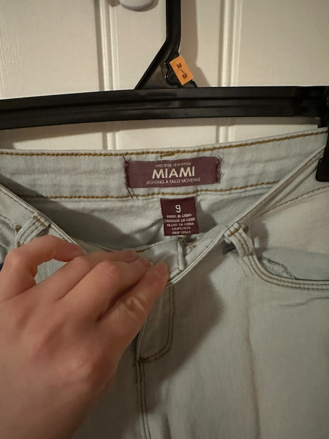 Miami mid-rise jeggings in a light wash. Size 9. Made in China. These jeggings are a comfortable choice for everyday wear.