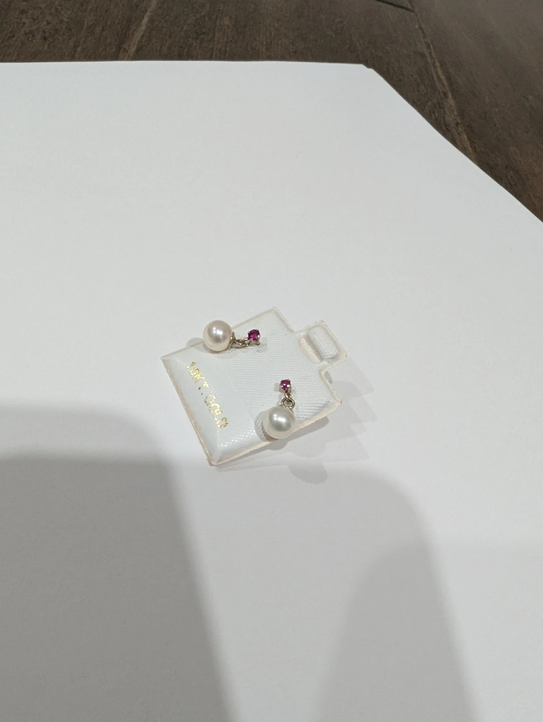 Brand new 10kt yellow gold fresh water pearl and Ruby drop earrings for sale. Natural genuine pearls and ruby, June and July birthstone, made in Canada, $170 FIRM.