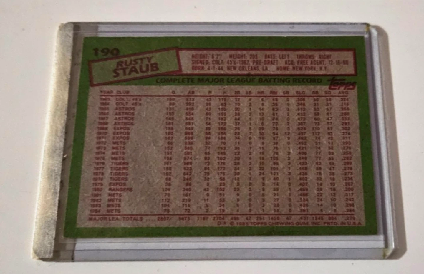 1985 Topps Baseball #190 Rusty Staub, N.Y. Mets, Autographed
