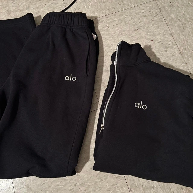 Selling a men’s Alo black set including sweatpants and a quarter zip. Never worn, unused, and in perfect condition. Brand: Alo. Colour: Black. Includes: Sweatpants + Quarter Zip. Condition: Brand new / unused. Comfortable, high-quality material. Clean and ready to wear. Size: Medium. Cash accepted.