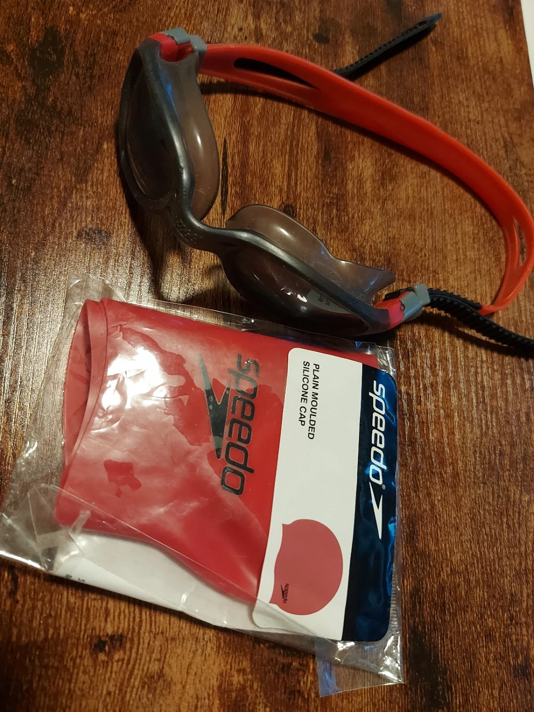 Selling a pair of Speedo swim goggles and a plain moulded silicone cap. The swim cap is still in its original packaging!