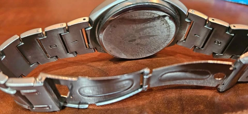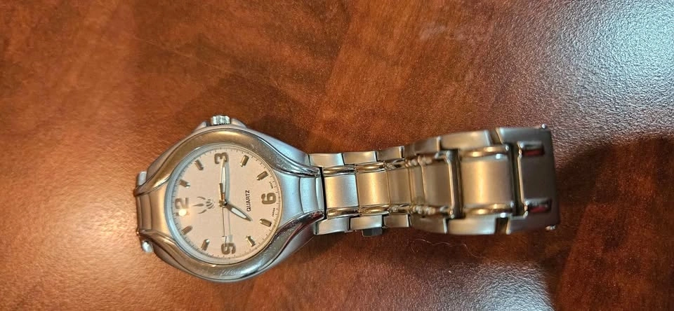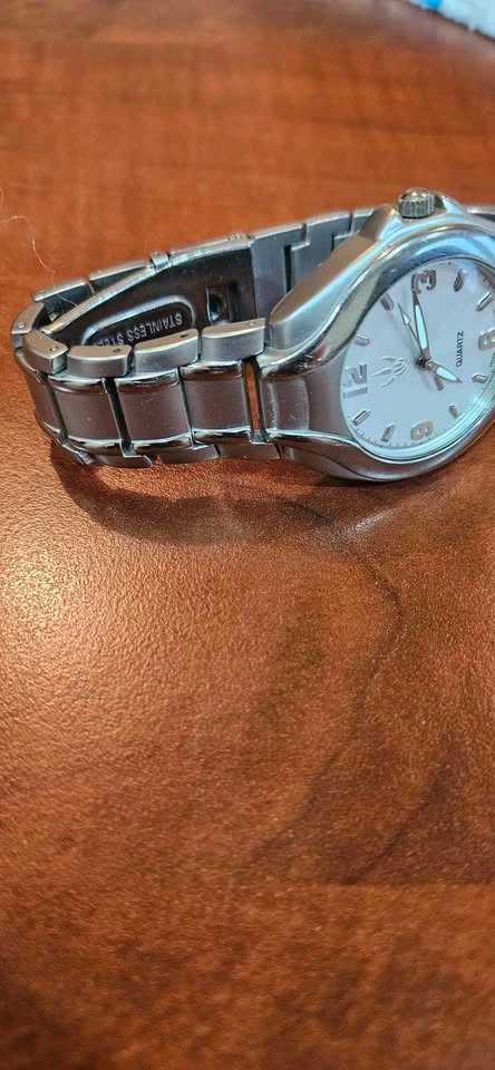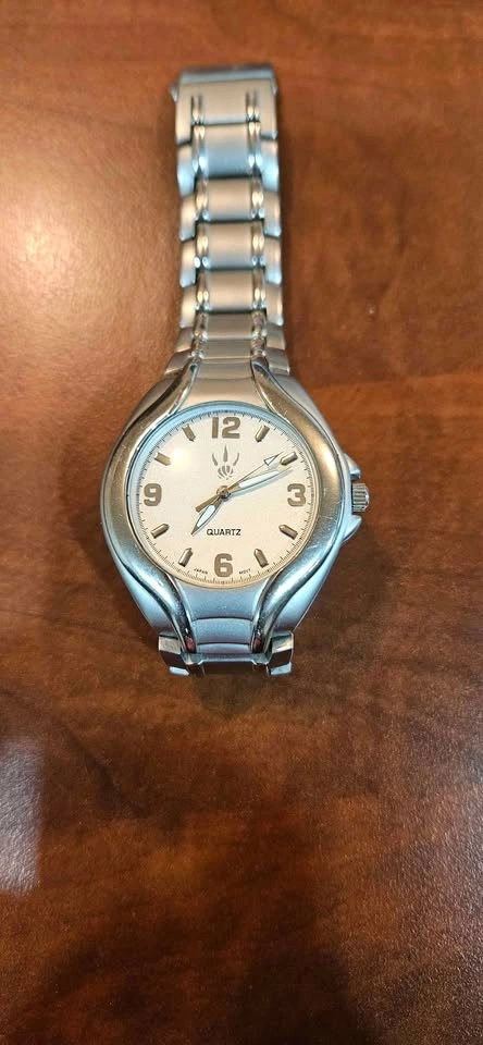 Has new battery, works well and in very good condition. Slight scuff marks. Slight buffing will remove. Quartz, Japan Mvmt, back plastic still in place.