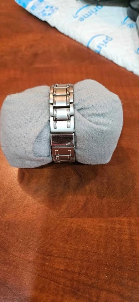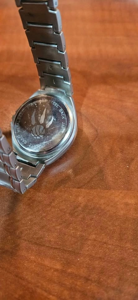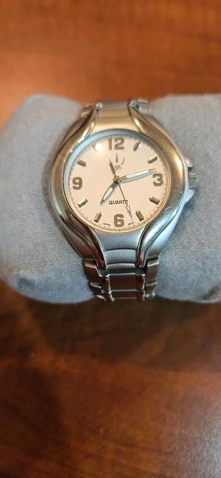 Has new battery, works well and in very good condition. Slight scuff marks. Slight buffing will remove. Quartz, Japan Mvmt, back plastic still in place.
