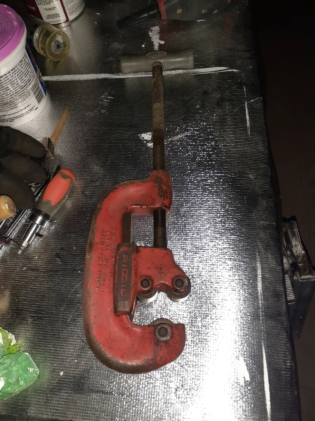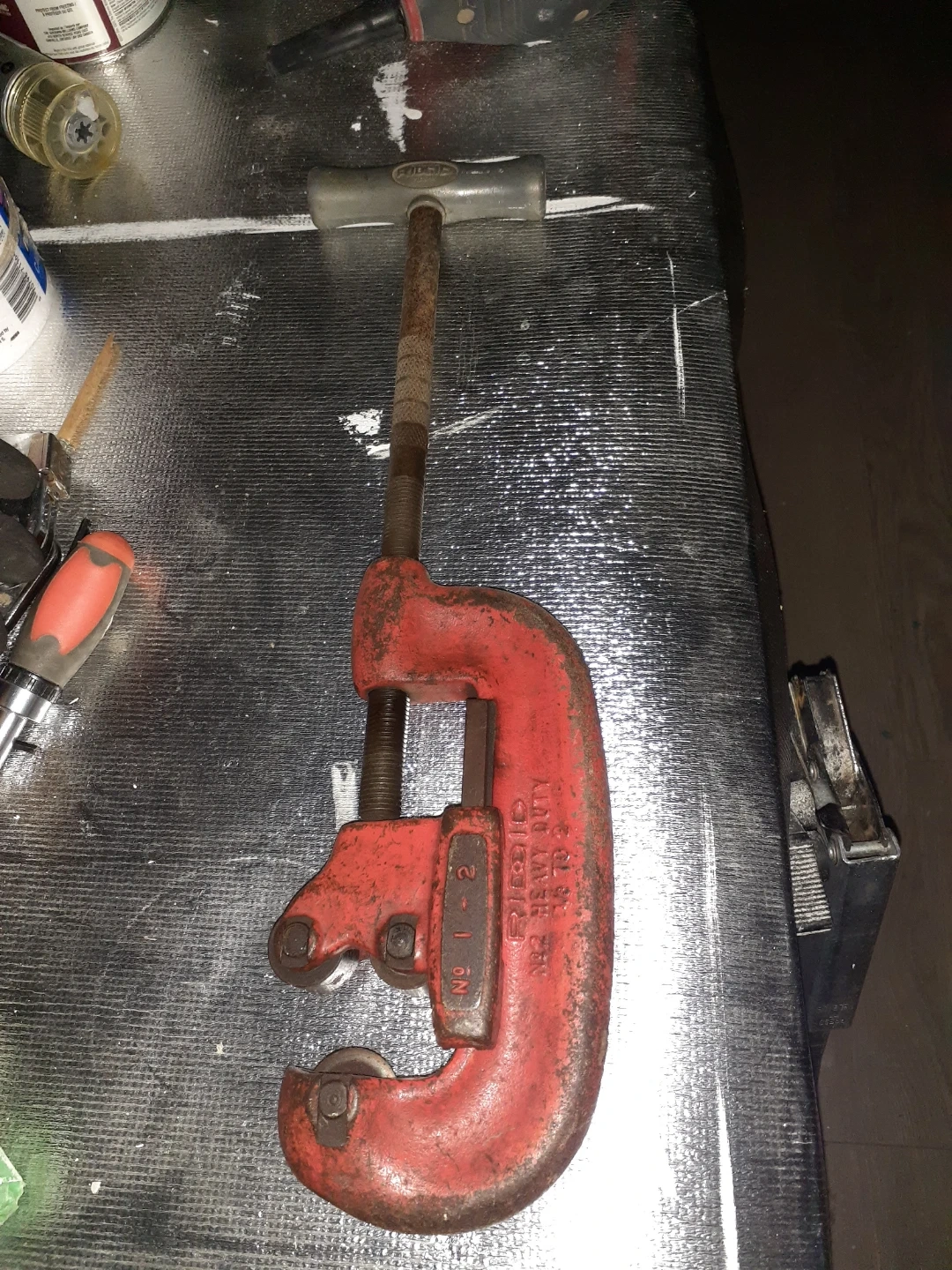 RIDGID pipe cutter. Model No. 1-2. Heavy duty construction for cutting pipes. This tool is essential for plumbing work.or it was at one time.