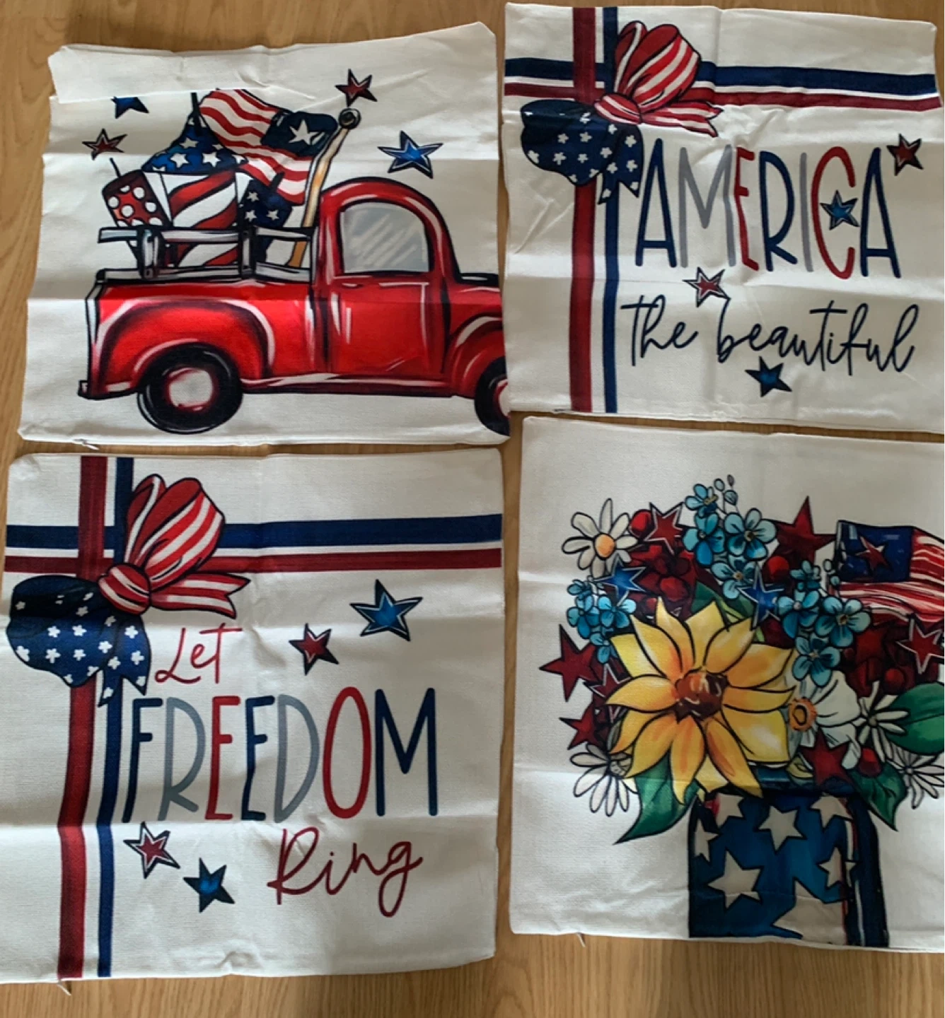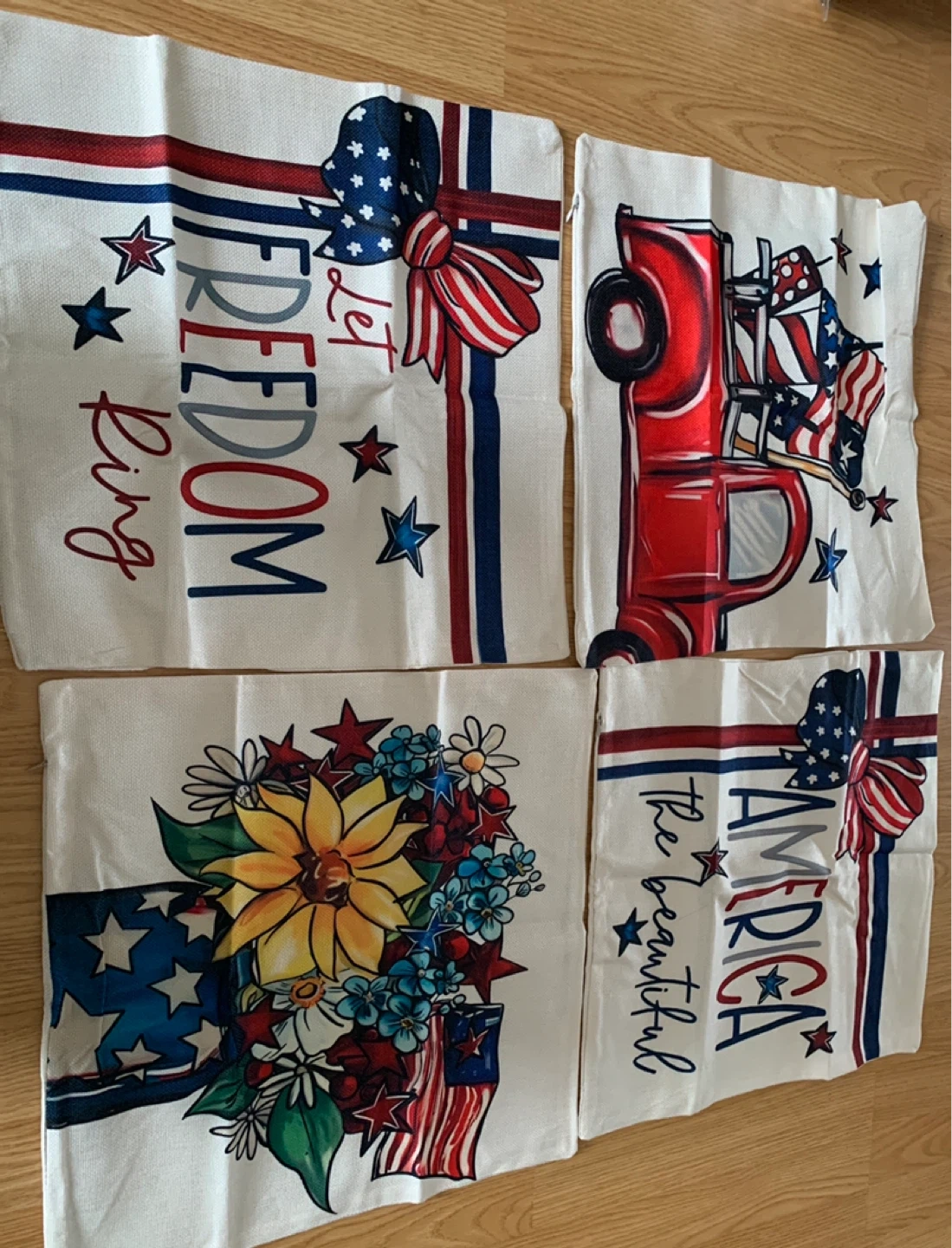 These pillow covers feature vibrant Fourth of July designs with patriotic phrases and imagery. They're made from a durable fabric perfect for indoor or outdoor use. Add some festive flair to your home decor this summer!