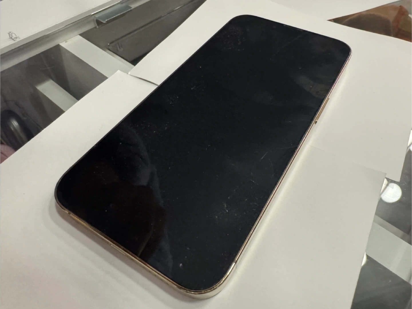 This is an Apple iPhone 14 Pro in gold. It's a powerful smartphone with a great camera system. Includes original box