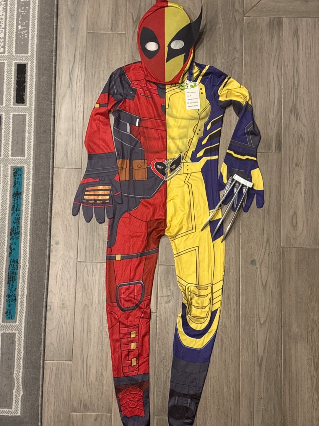 Selling a Kids SPLIT Deadpool - Wolverine Halloween Costume with Mask and Wolverine claw! These are perfect for completing a Deadpool/Wolverine costume or for any Marvel fan. Brand New condition and ready for a new home