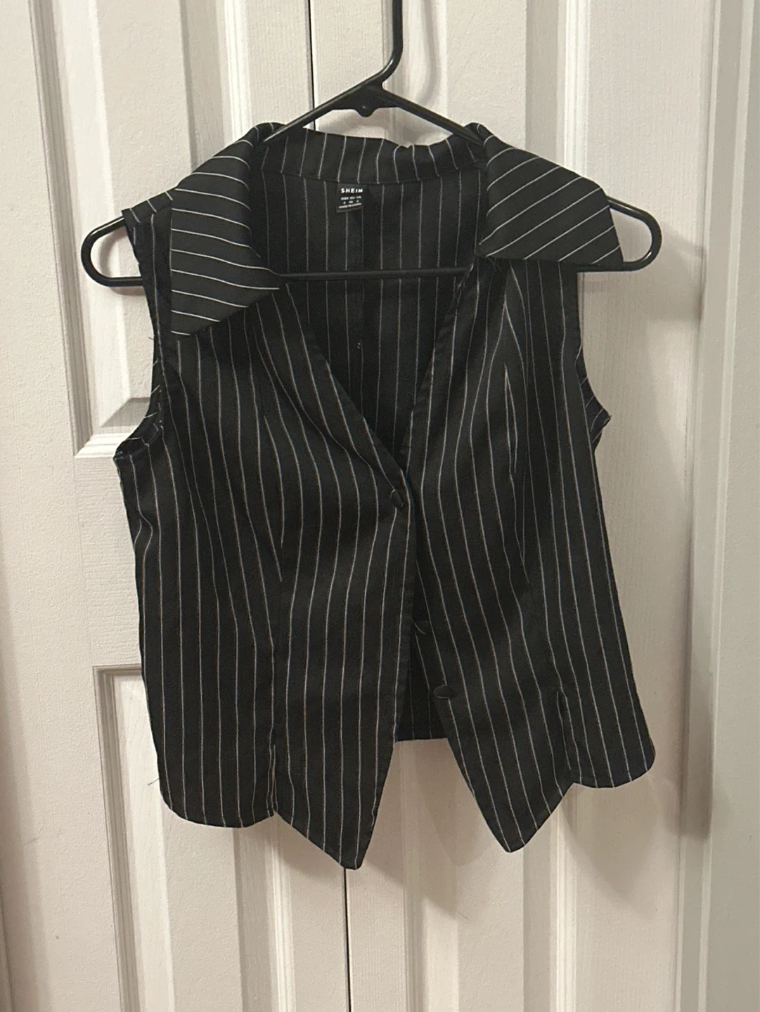 Gilet sans manches à rayures fines, marque Shein. Fermeture à boutons. Parfait pour un look habillé ou décontracté.
