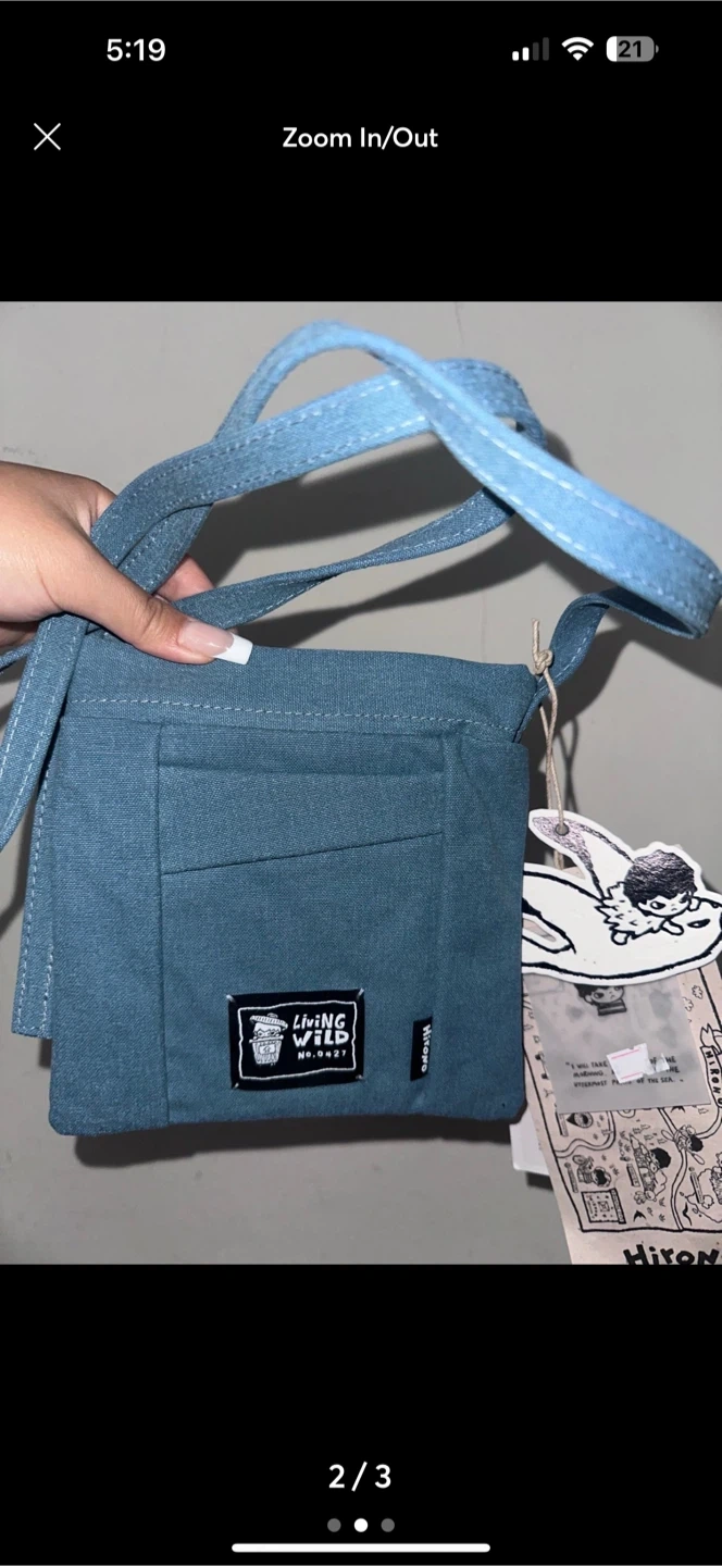 This is a Living Well crossbody bag in a nice blue color. It's perfect for carrying your essentials while keeping your hands free. It features a cute design and is in great condition!
