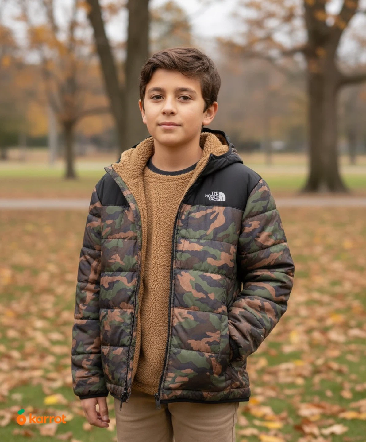 I'm selling a The North Face boys' reversible jacket in size XL (14/16). One side is a camo puffer and the other is a brown sherpa fleece. It was used twice last winter . My son outgrew it too fast .