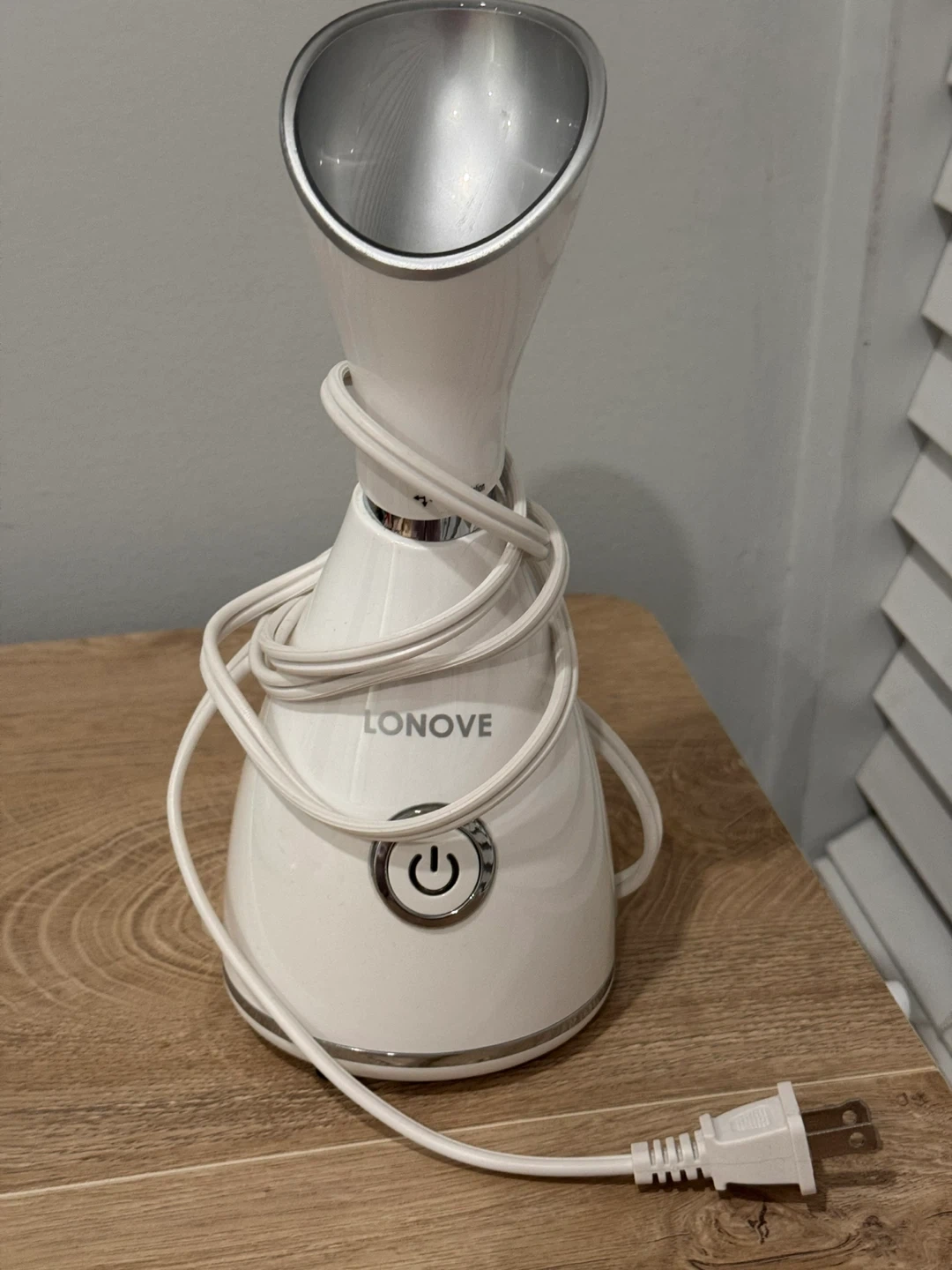 Here's a Lonove facial steamer in great condition! It's perfect for a spa day at home. This steamer is easy to use and will leave your skin feeling refreshed and hydrated