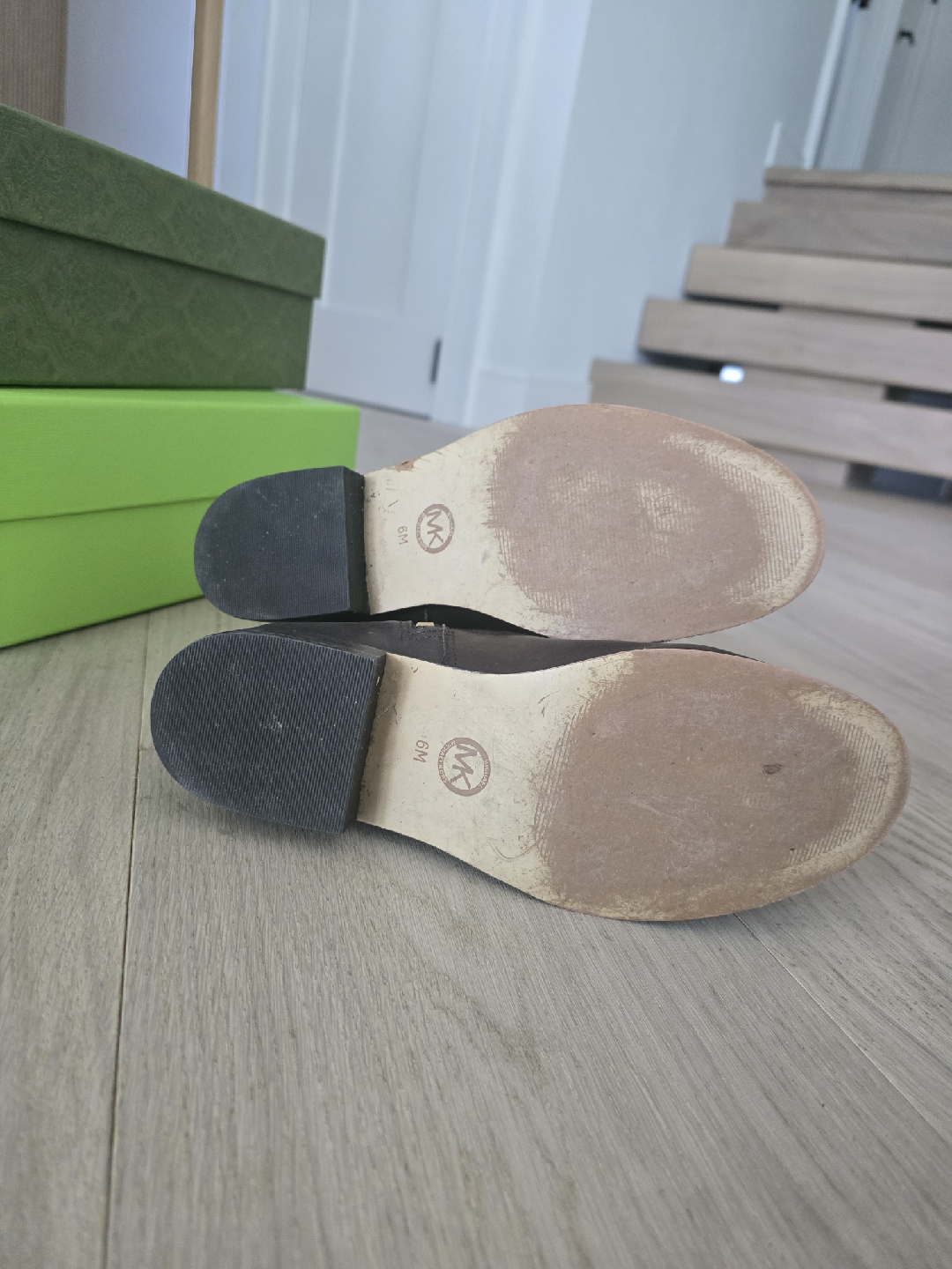 These Michael Kors knee-high boots are a stylish addition to any wardrobe! They are a size 6M and feature a sleek brown leather design with a comfortable fit. Perfect for dressing up or down!