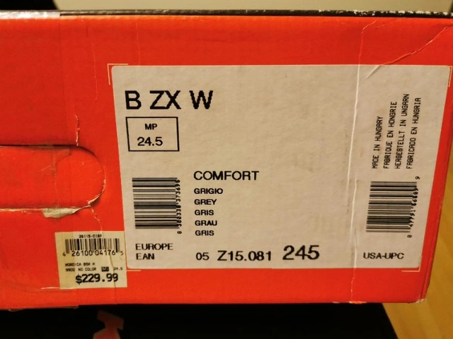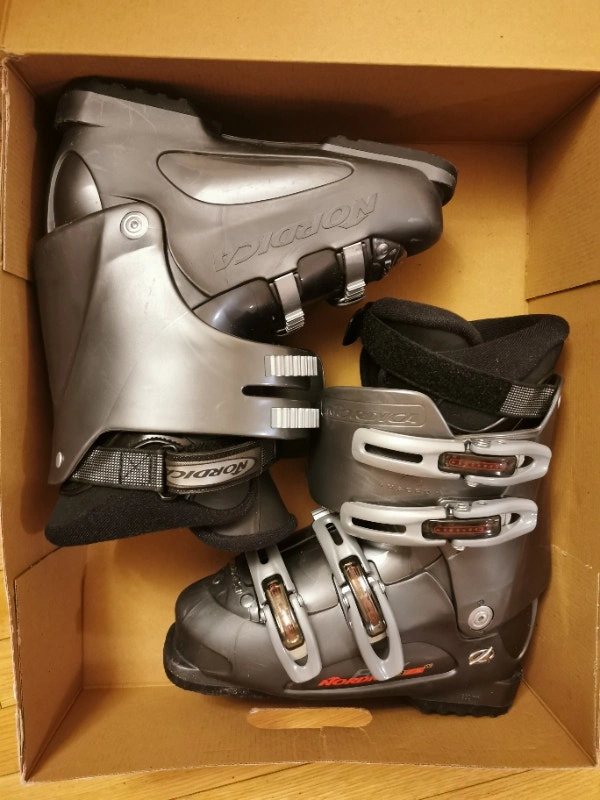 Well kept ladies’ Ski Boots in size 24.5 (280mm)! An once-worn pair of sliver gray Nordica BZX Ski Boots in excellent condition. Super clean inside and out. Made in Hungary. Great ski boots nicely padded. Comfortable and warm. Pick up at Canadian Tire parking lot near Yonge St and Tower Hill Rd. Cash accepted.