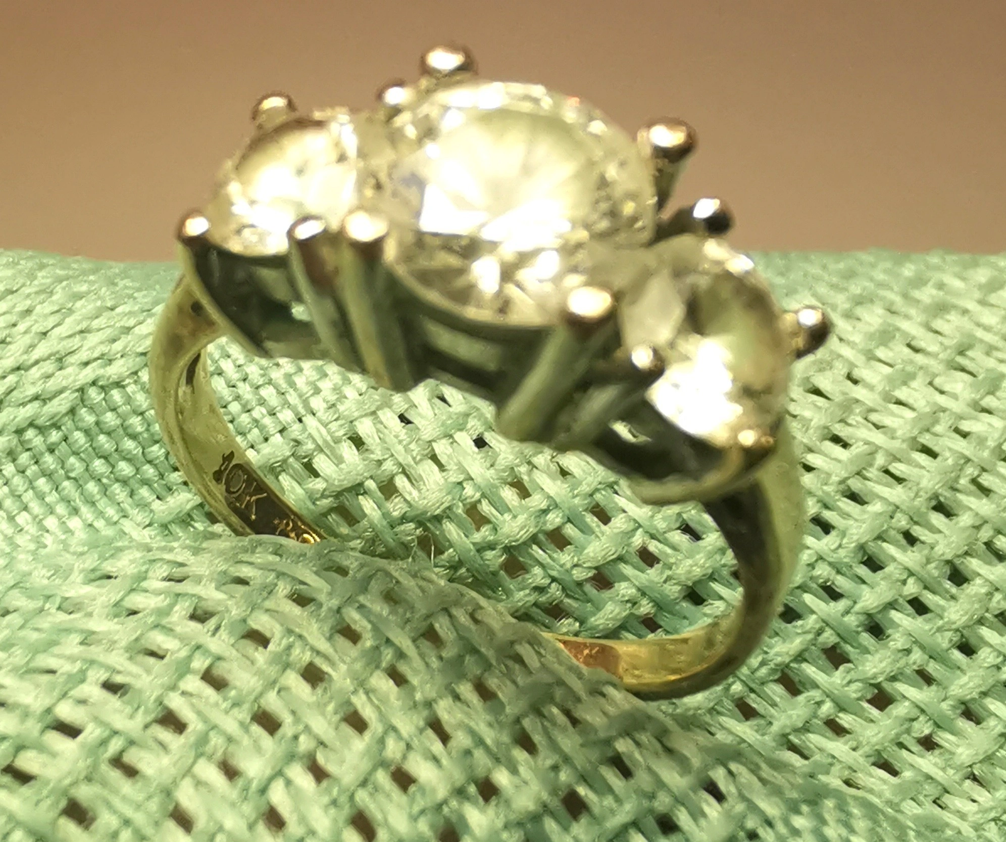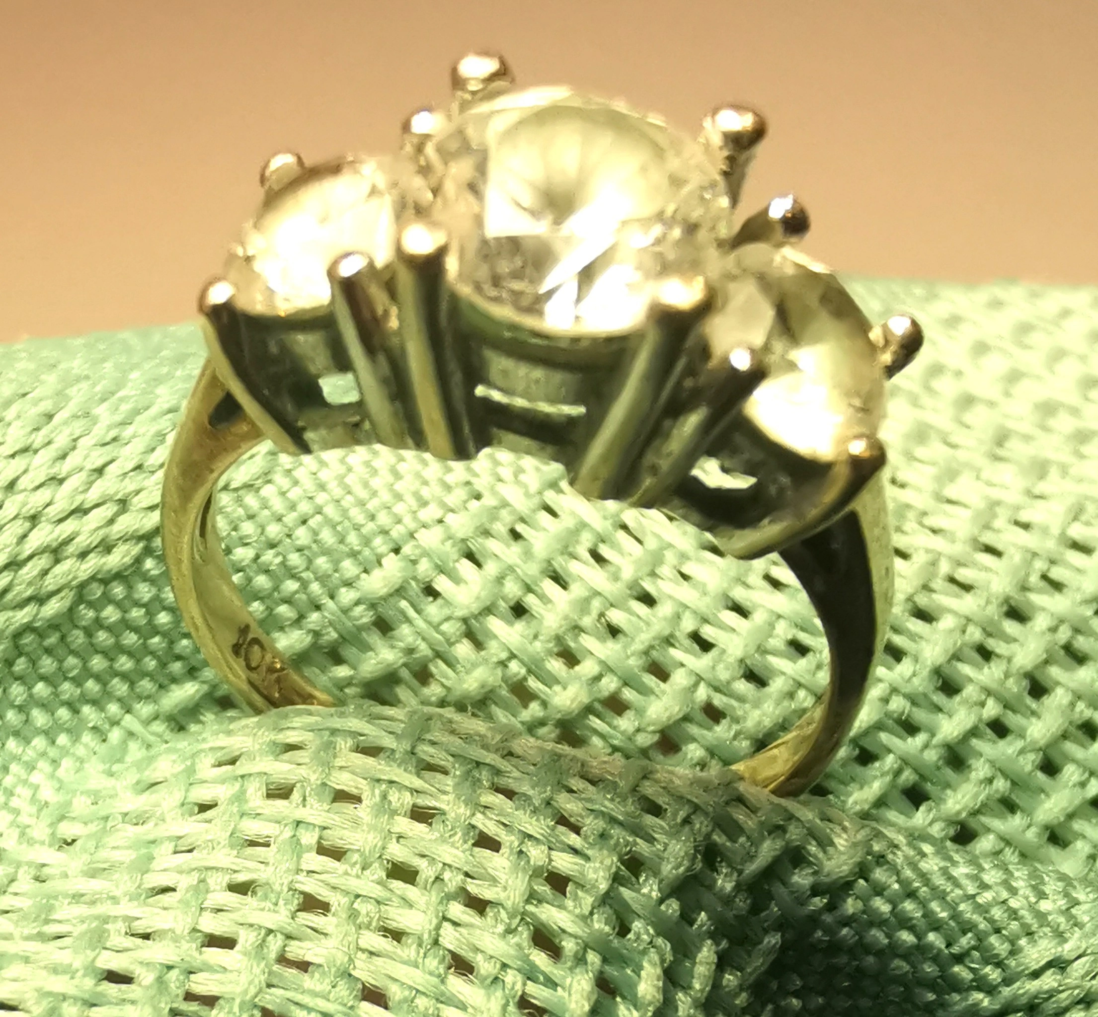 1980s S.L. Osborne 10K Yellow Gold 3-Stone Trilogy Ring Size 4