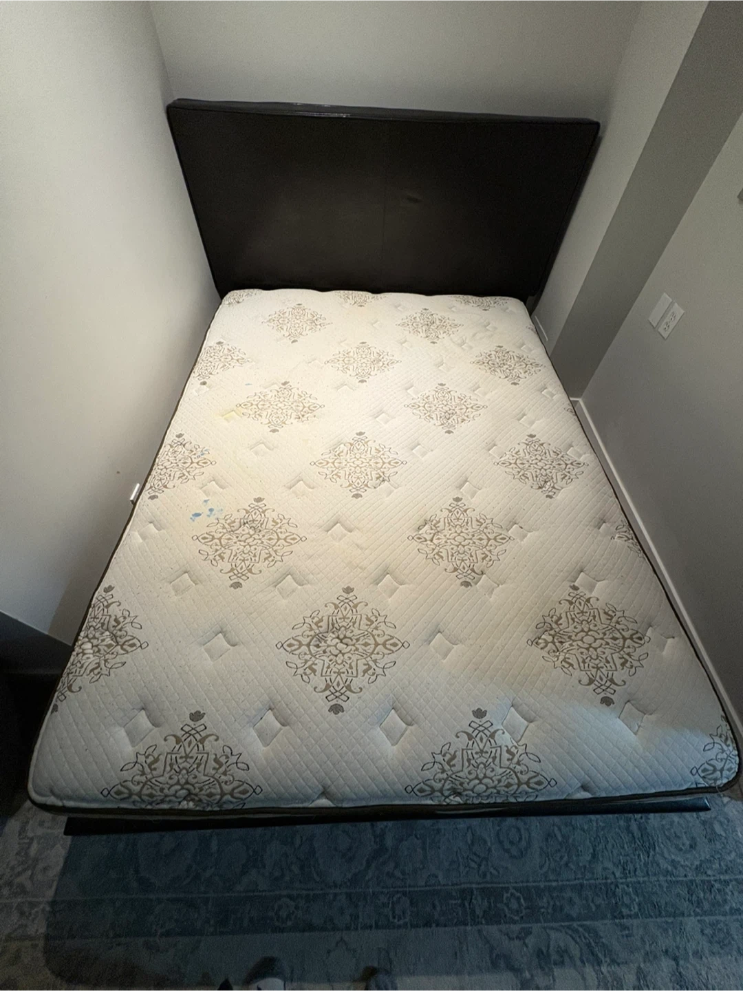 Selling a used queen sized mattress in good condition. It has a patterned design on the top. Perfect for a spare room or a starter bed!