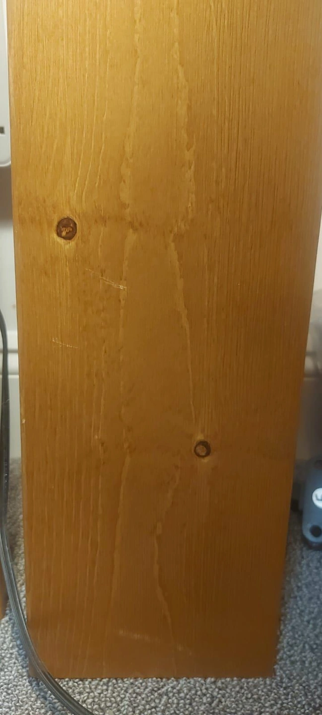 There are a few cosmetic scratches on the siderails from moving/storage (see photos). Does not affect use or stability.