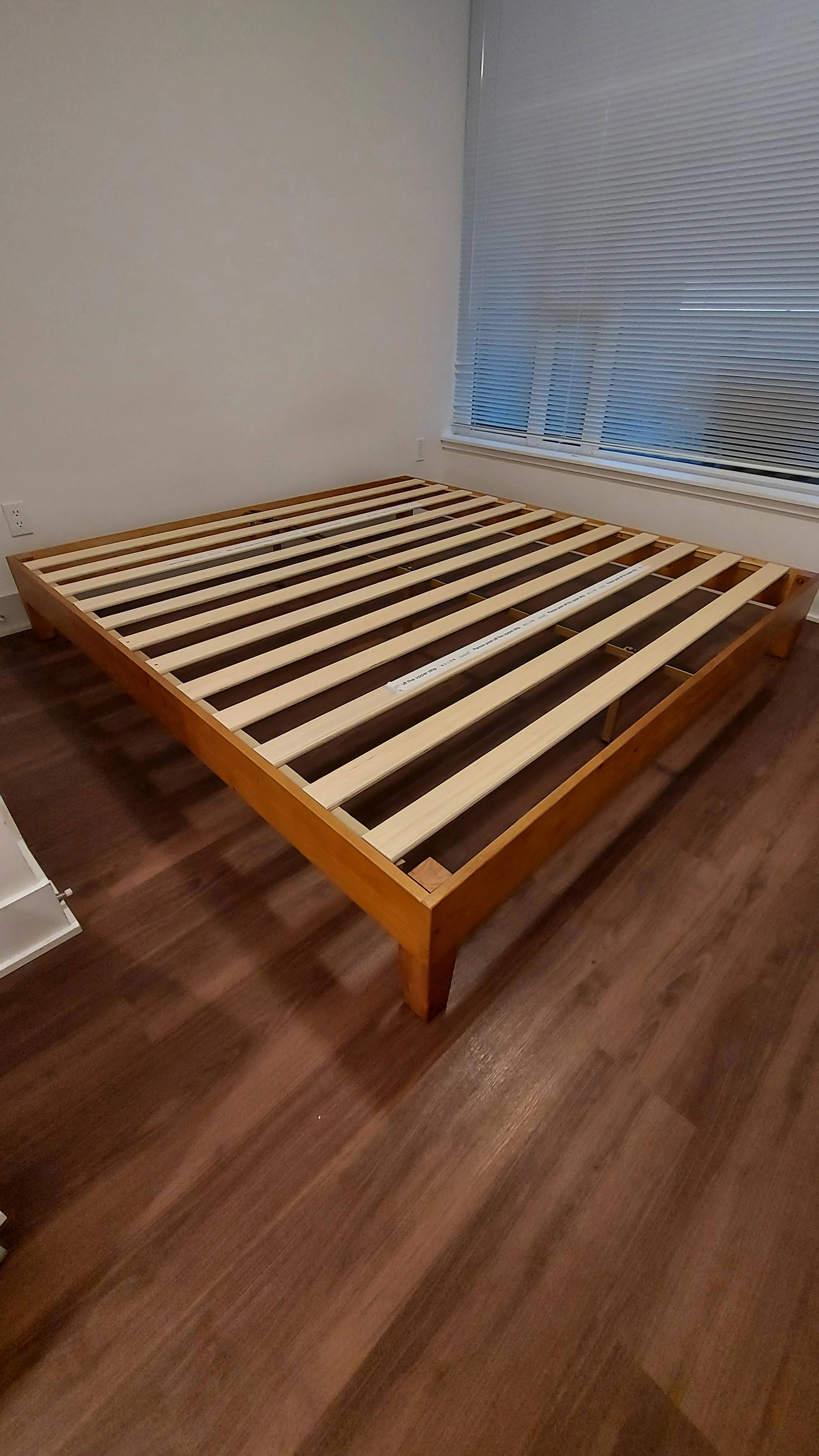 Solid Wood King Platform Bed / Like New, Easy Pickup