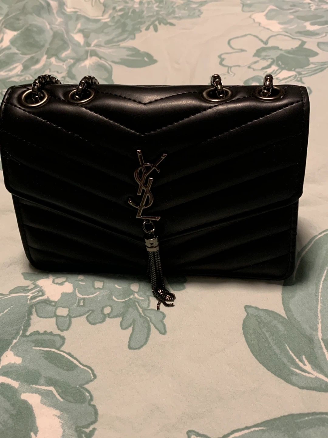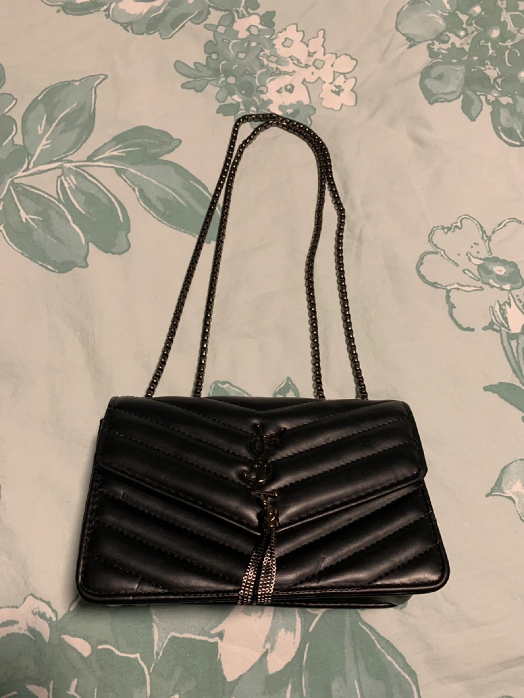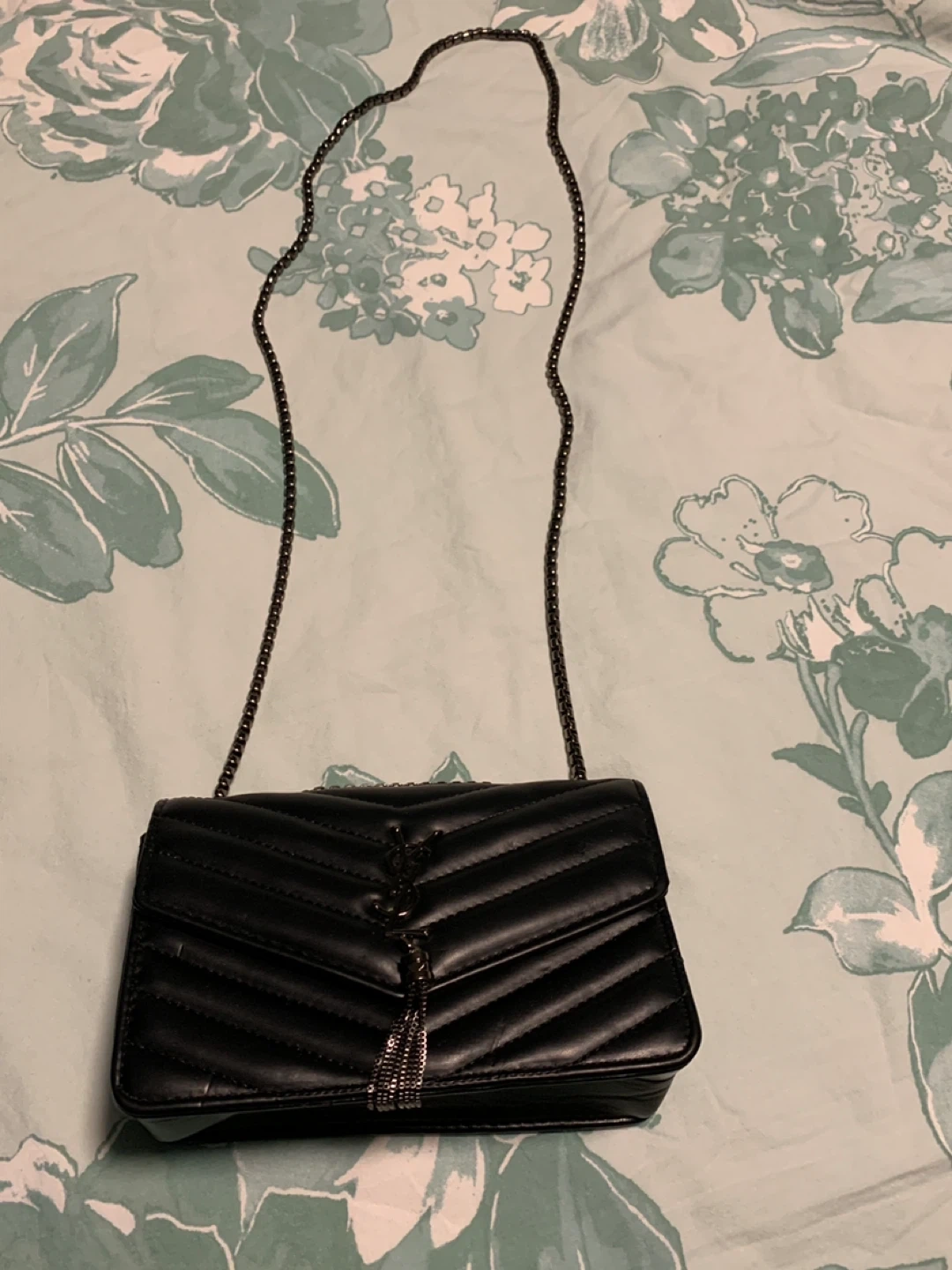 This chic black shoulder bag features the iconic and a stylish tassel detail. It's crafted from quilted leather with a durable chain strap. Perfect for a night out or adding a touch of elegance to any outfit!