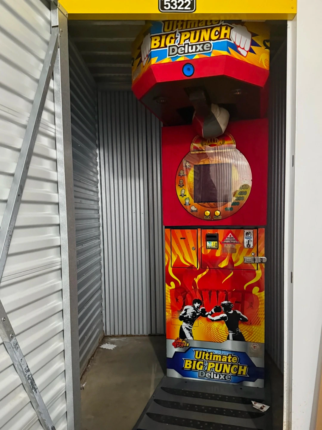 This is an Ultimate Big Punch Deluxe arcade boxing game. It features a digital score display and colorful graphics. Measures approximately 6 feet tall.
