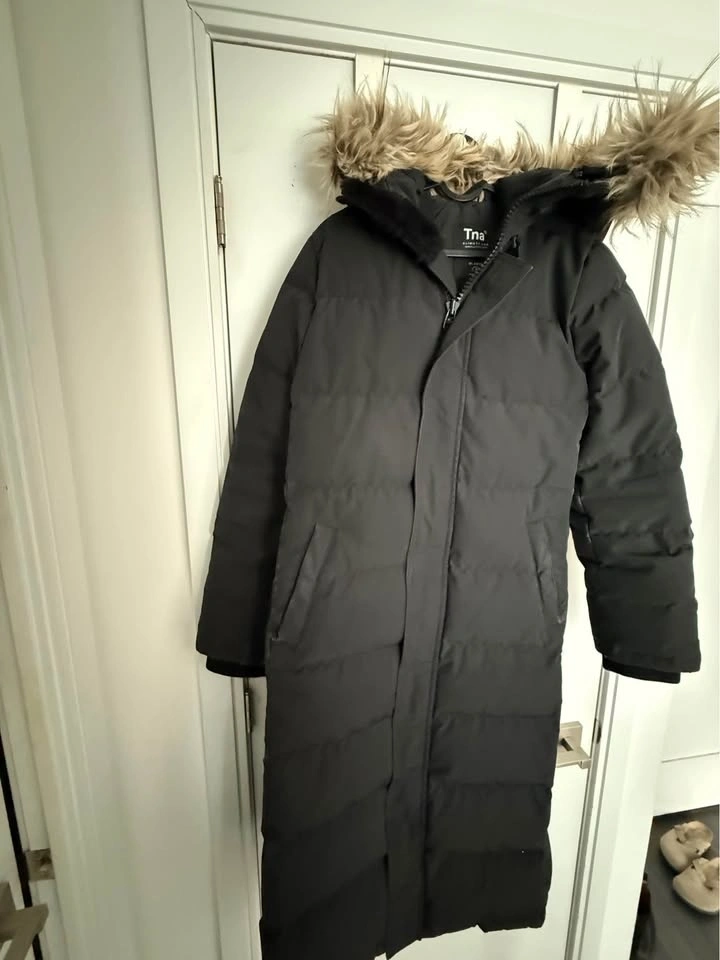 Super warm Tna St. Anton long puffer coat. Has a cozy faux fur hood. Keeps you warm in cold weather.