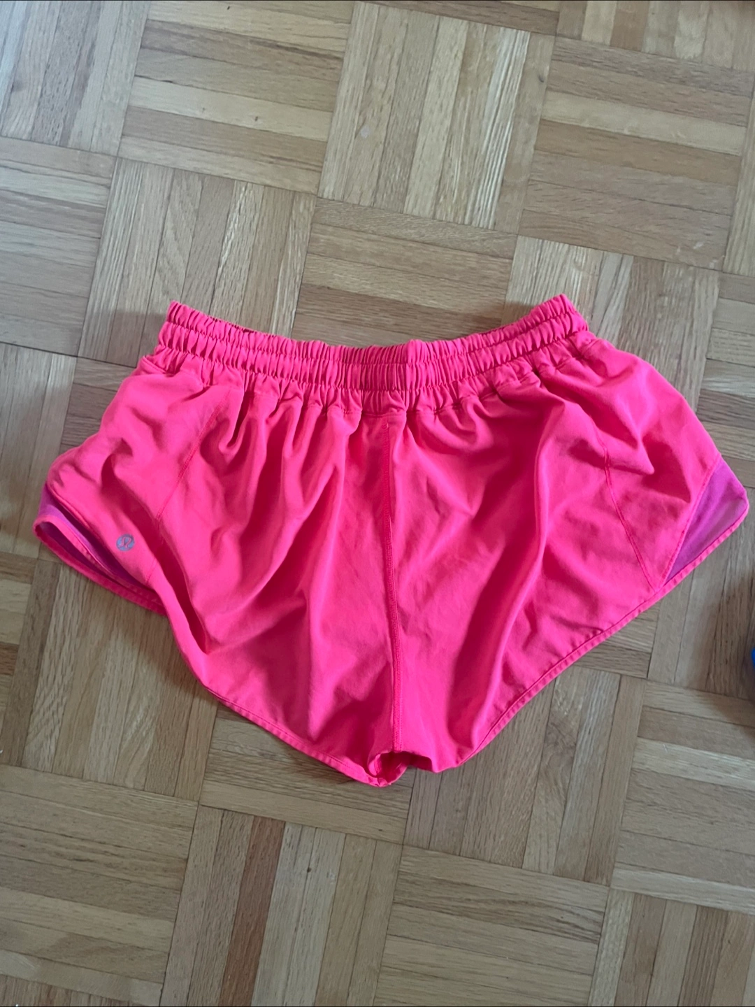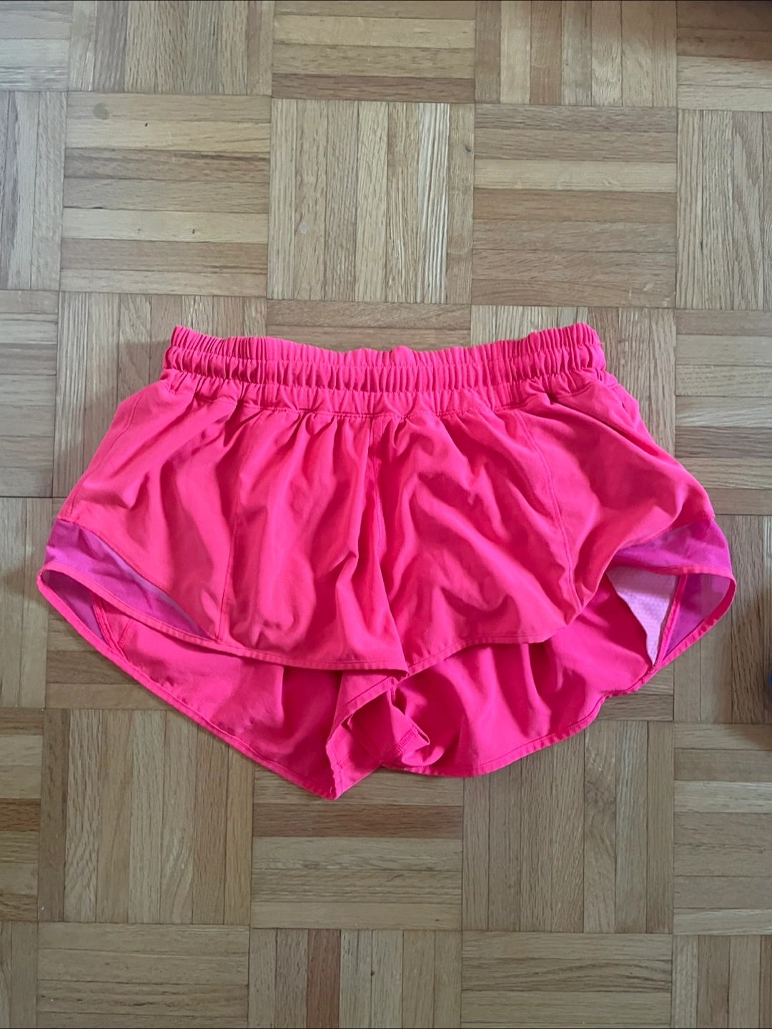 Selling a pair of Lululemon Hotty Hot shorts in a vibrant pink colour. These are a size 6 and in great condition. Perfect for running or any workout!